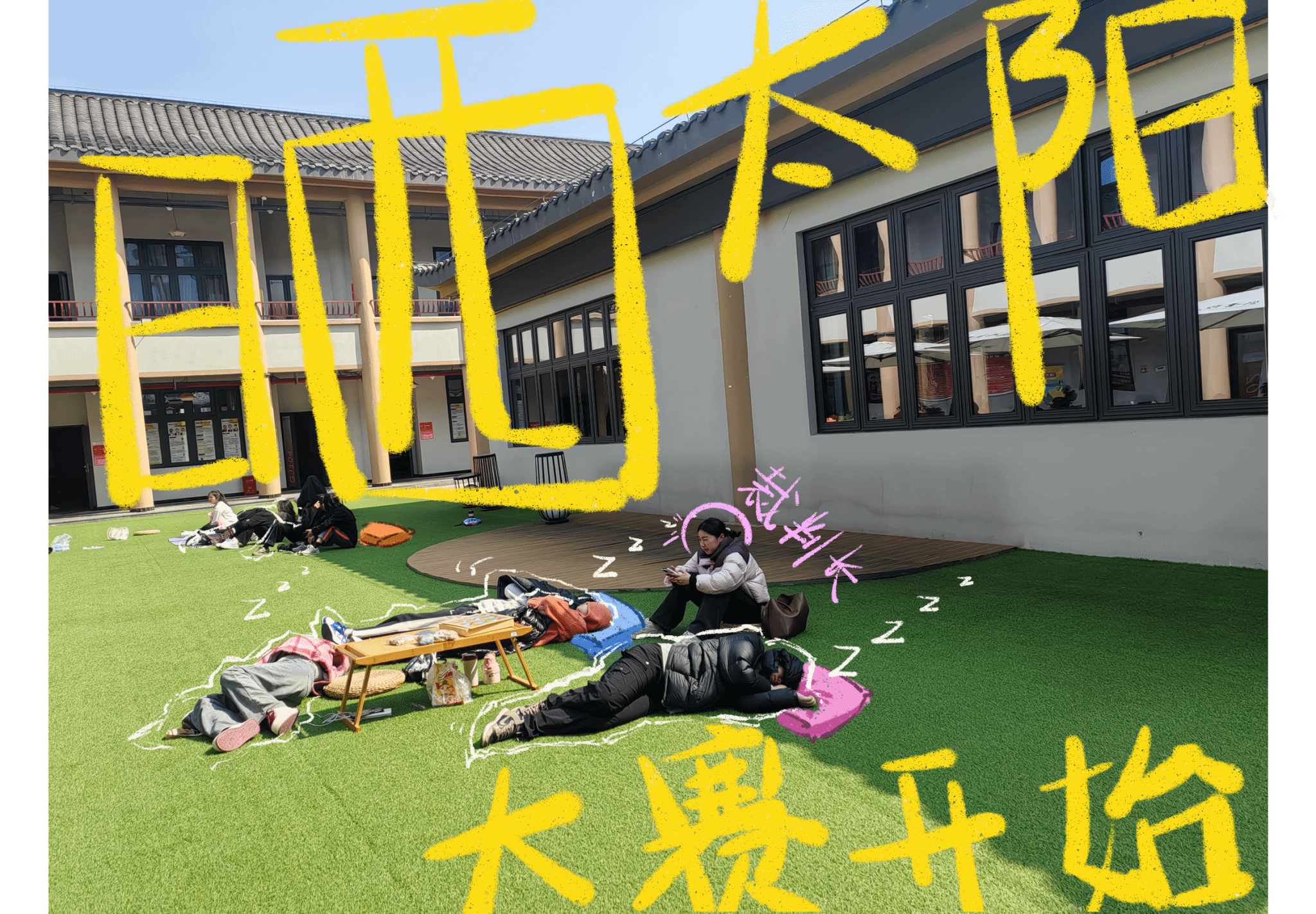 春光明媚,古剑得意·中庭草坪突然“长”出了一片大学生!有人埋头书海、有人组团“厮杀”桌游战场,还有人直接躺平“光合作用”……阳光、蓝天、绿草地,青春浓度直接拉满!