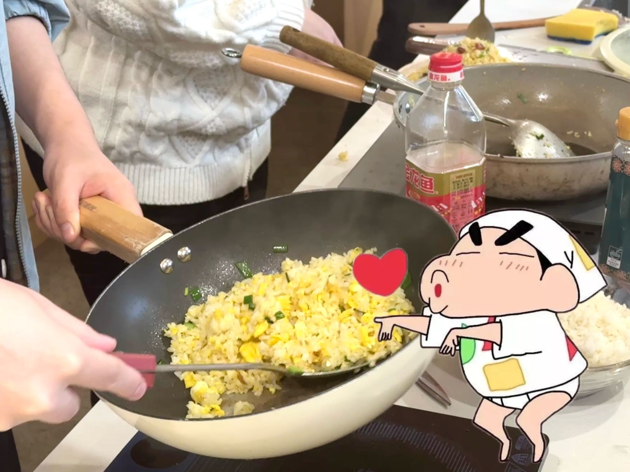 一起将目光聚焦于经典动漫《蜡笔小新》,挑战还原那碗极具治愈力的小新家蛋炒饭!《蜡笔小新》承载了无数人的美好童年回忆,在那段纯真岁月里,它始终相伴左右。动画里那碗承载着野原家温情的黄金蛋炒饭,此刻化作连接理论与实践的奇妙纽带。"动感光波!哔哔哔哔~"的搞怪配音中,主厨正跟着小新颠勺技巧,大家因对二次元的共同热爱讨论起火候掌控。