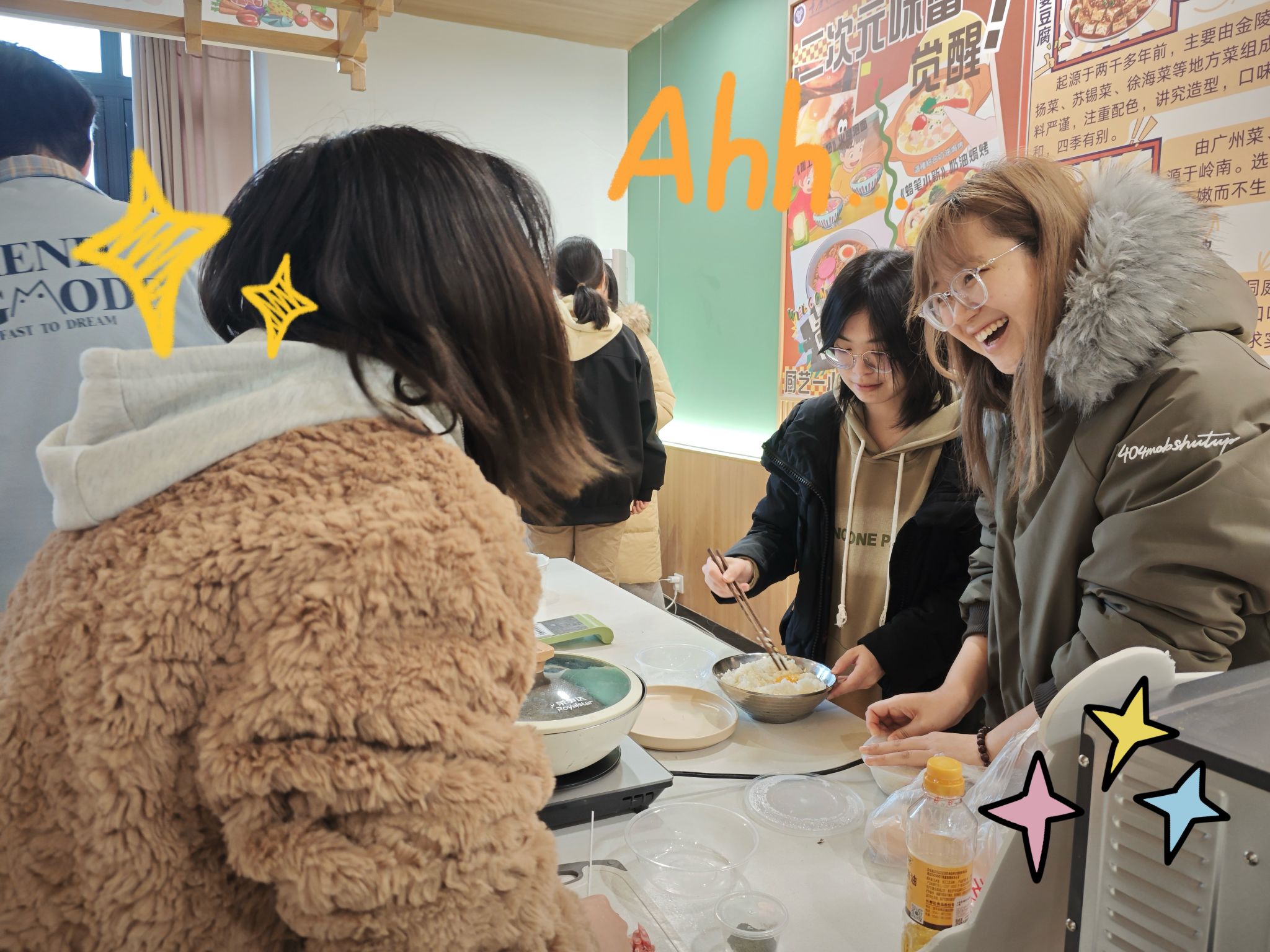 书院内,一群热爱生活的学子,其中不少人是二次元的忠实粉丝,心中对动漫怀揣着炽热且纯粹的情感,也有不少学子痴迷于烹饪,渴望在锅碗瓢盆间施展身手。活动现场,两种热爱奇妙交织,大家激动分享动漫名场面,随着三份"会发光的料理"惊艳出炉,相互品尝着亲手制作的蛋炒饭,热烈探讨烹饪技巧,思维的火花不断碰撞,在欢声笑语中,自然而然地建立起真挚的友谊。