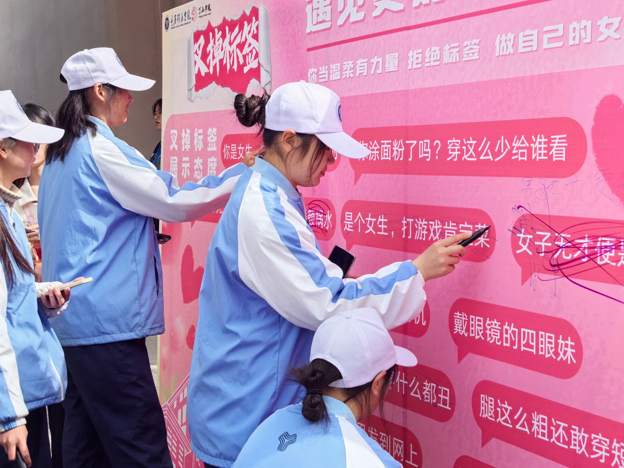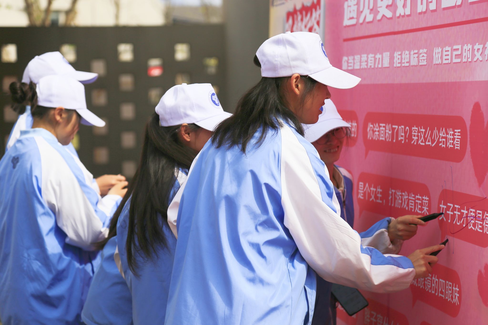 “魔镜,魔镜,谁是世界上最棒的人?”写下信件后,同学们进入“以画为镜,照见你的美”环节,通过DIY绘制专属于自己的“夸夸镜”,展现自我魅力与成长。最后,主持人在活动结束时引导同学们在“夸夸墙”上写下自己最近做得很棒的一件事,或分享身边优秀女生的故事,夸奖是对人类最好的“充电宝”。