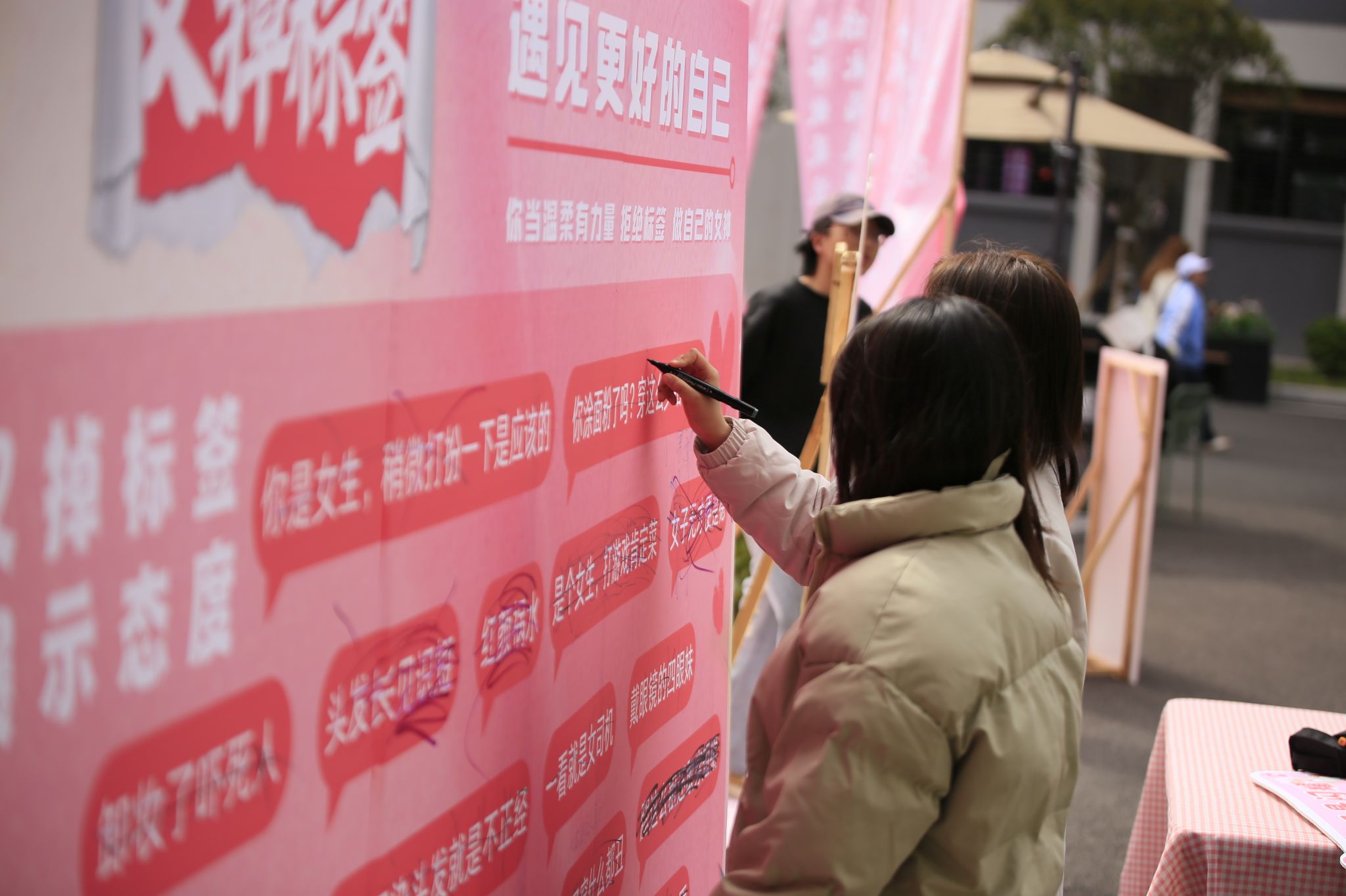 “女孩子染头发就是不正经”“女生打游戏肯定菜”“学得好不如嫁得好”这些标签像隐形的枷锁,试图将女性困在既定的框架中。这次女生节,我们拒绝被刻板印象束缚!活动现场,参与者们在入场签到的“划掉标签,置顶梦想”的环节划掉了外界流言蜚语对她们的限制。摆脱外界的束缚,勇敢追求自我。随后,大家进入“Girls躺营地”,在轻松的氛围中开启了感恩行。