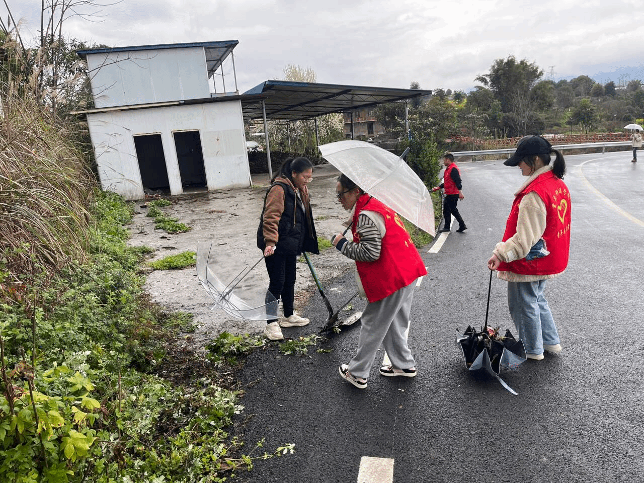 活动中,学生们分组对村内主干道、文化广场等区域展开清扫。2023级计算机学院谭俐在清理沟渠时感慨:“淤泥里藏着课本外的学问,弯腰扫地时才真正明白‘劳动创造价值’的含义。”村民的暖心互动更添温情:村民为满头大汗的学生递上热茶,连声称赞“新时代青年接地气”。活动间隙,师生还与村民围坐交流,围绕乡村振兴、基层治理等话题展开讨论,将思政课堂延伸到田间地头。