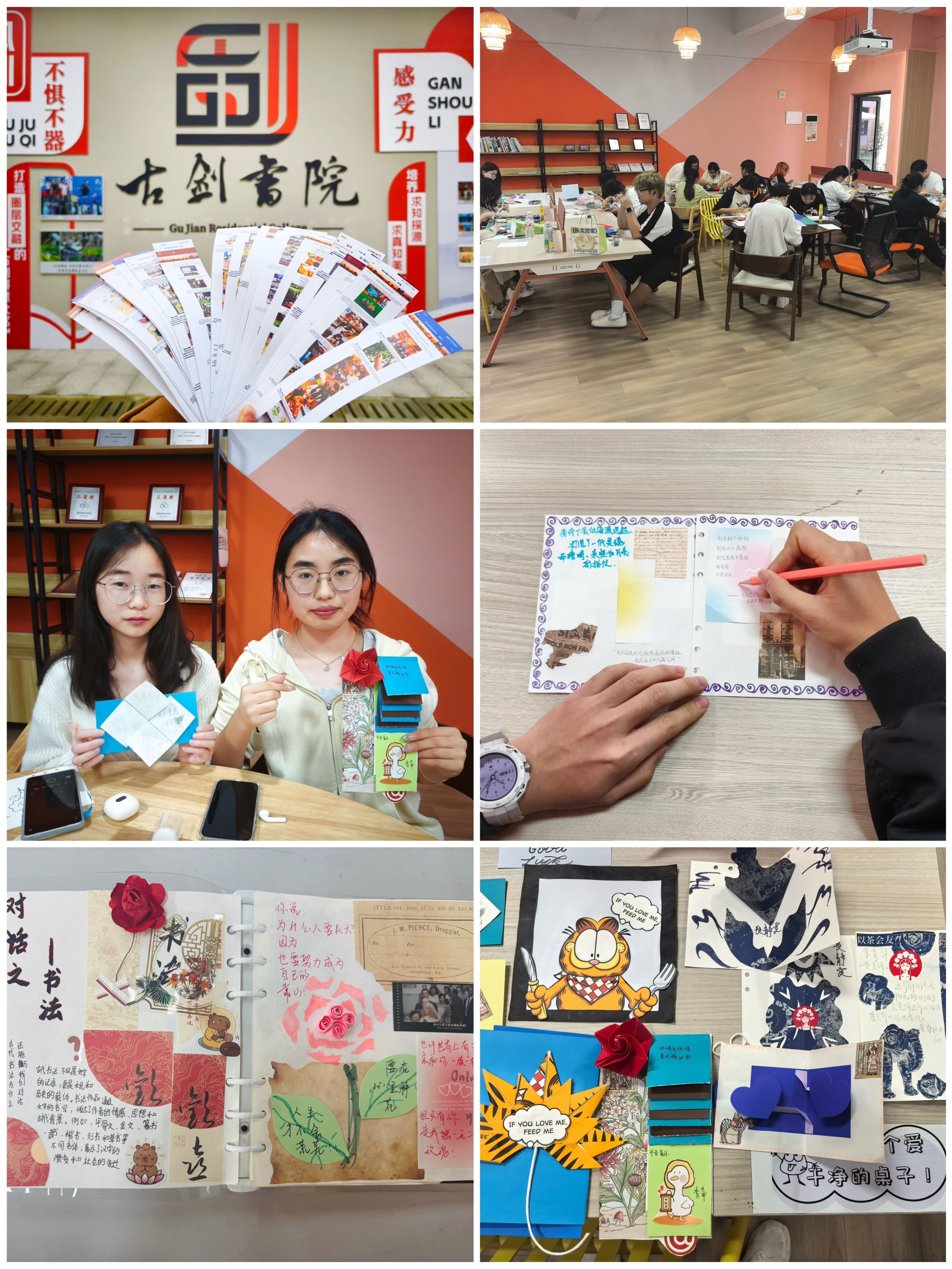为丰富学生的社区生活,感受古剑“得趣”生活。古剑书院带领社区学子收集日常生活中常见物品的包装,通过剪裁、拼贴的方式,制作一本独属于自己喜好的生活周边,引导古剑学子发现生活美,记录生活美。