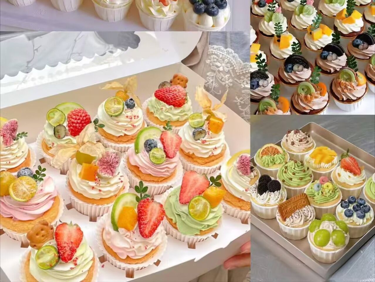 双层ins风格设计,紫色奶油堆叠出春日云朵,表层铺陈芒果/蓝莓/蜜桃鲜果矩阵,顶层蝴蝶糖艺盘旋——集体生日仪式压轴登场