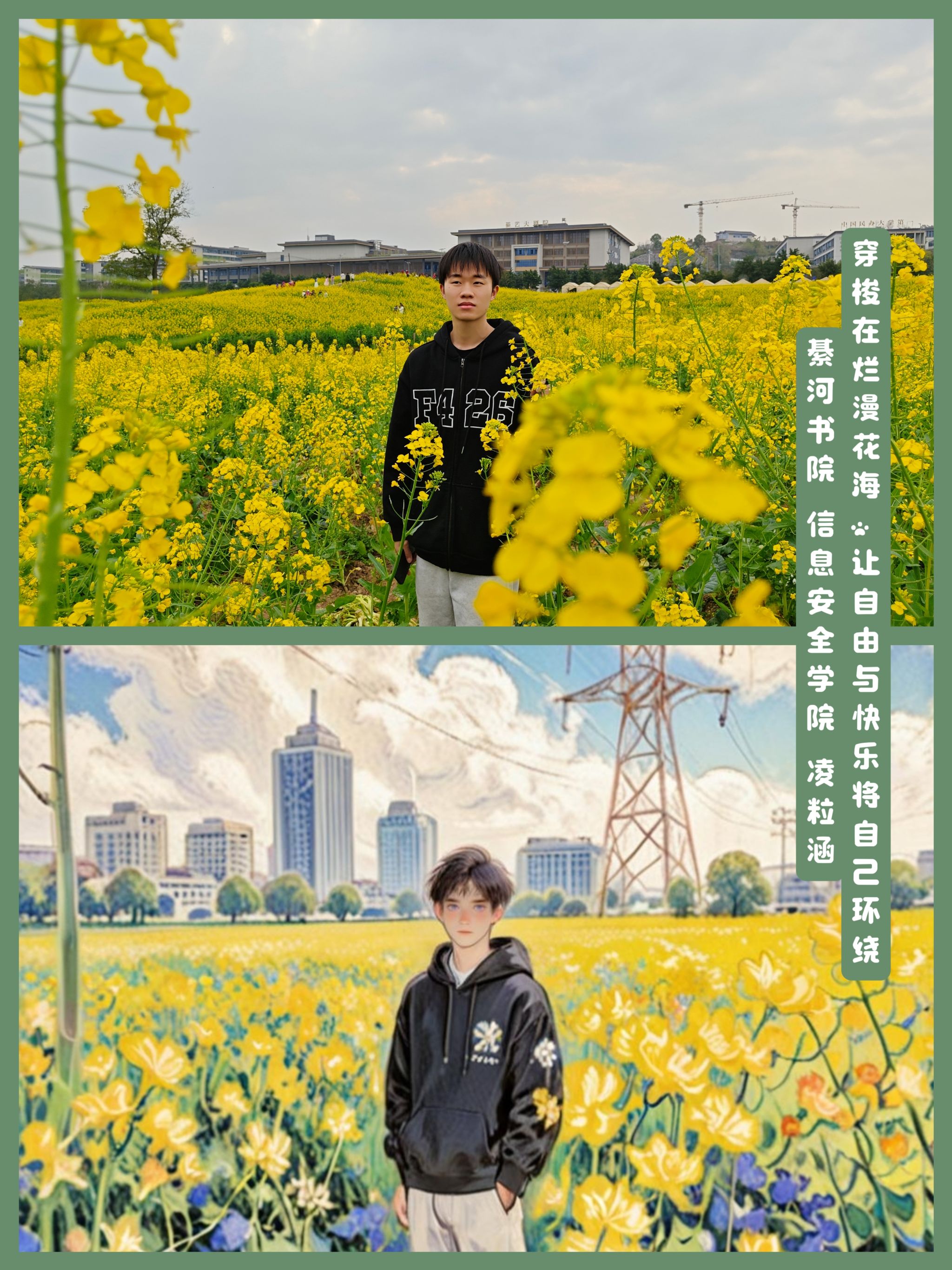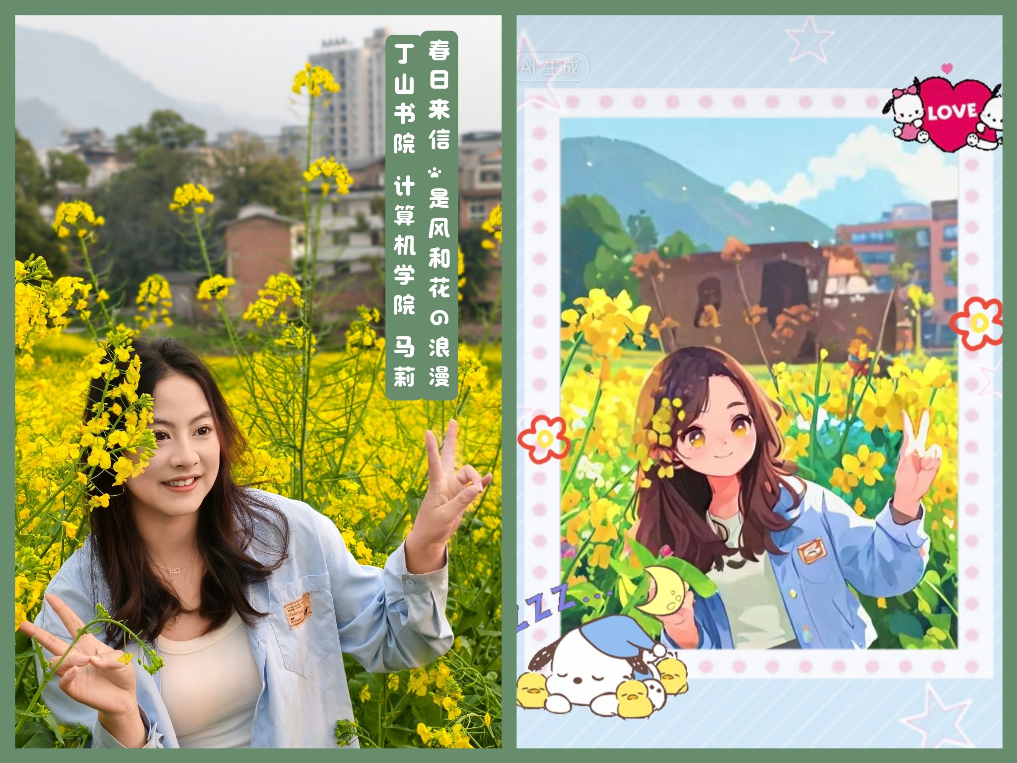 影像的轮廓,是阳光勾勒的诗文,当我们踏入AI漫画风的光影,即使是春日的油菜花田也在诗里续写着独属于自己的篇章 。
