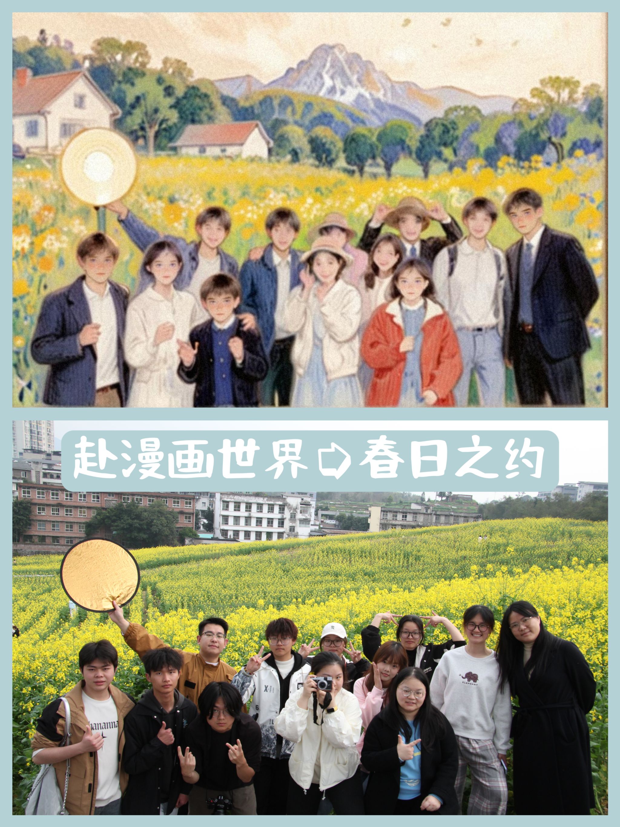 “用春日浪漫的影像,作AI漫画宇宙的入场劵”在科技与艺术不断交融碰撞的当下,故事构建的方式越发多元化,随着大众对AI技术的热情探索与不断掌握,綦河书院以AI的视角,于3月12日在校外春日油菜花田开启了多重宇宙的故事探索——AI漫画风影像拍摄活动,本次活动将AI技术与摄影艺术相融合,对比同一地点不同摄影工具不同人物的现实与AI影像,让参与者“穿越”不同次元感受照片背后的故事,链接时空的情感。