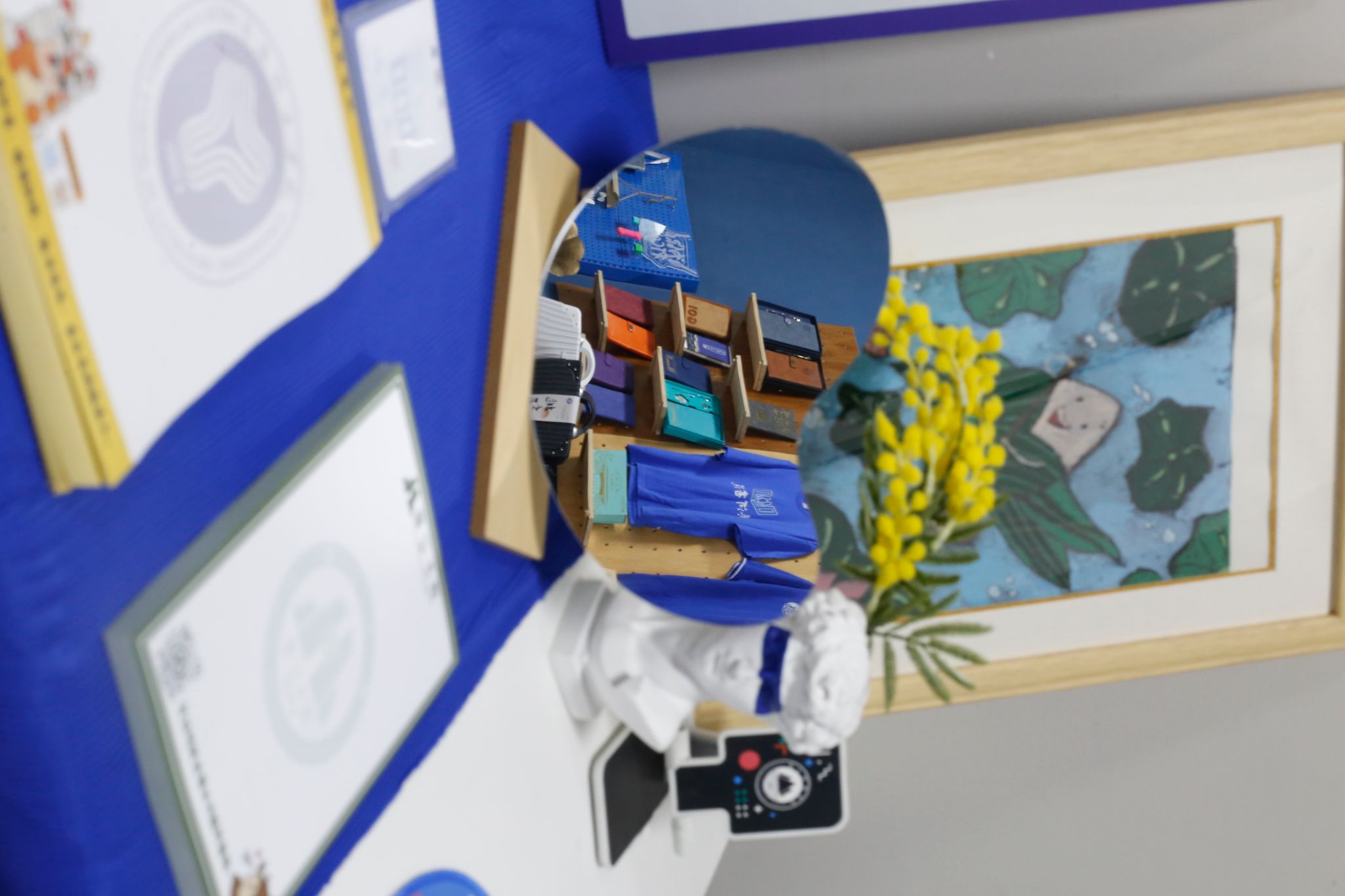 受到各大书院和学院积极响应,工坊特别设置的文化共建展区收到来自瀛溪书院、玉棠书院、横山书院、瀛洲科幻学院、电影评论中心、艺术教育中心、国际教育学院等20余个组织单位的130余件作品。各书院吉祥物们在展柜里“亲切会晤”,不同设计风格的碰撞擦出耀眼的文化火花。