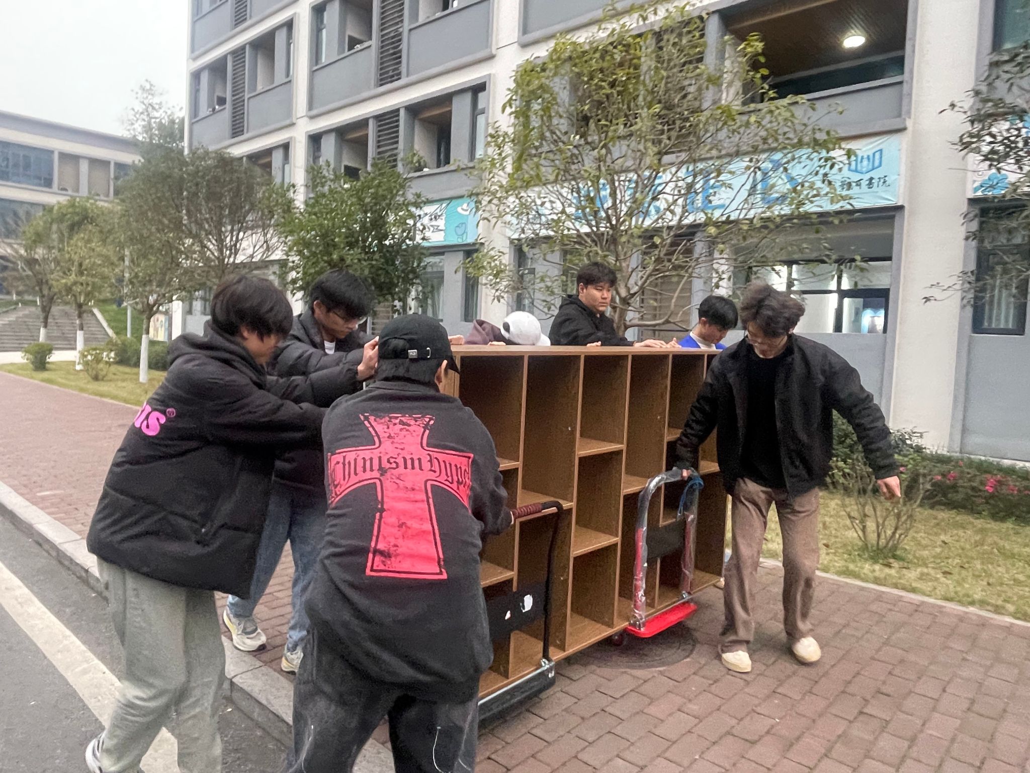 当电钻声在 QH3104 响起时,没有人想到这里即将诞生别具一格的文化地标。在同学们的齐心协力与老师们的悉心指导下,从一张张粗糙的手稿,到一幅幅精美的设计图纸跃然纸上,他们在材料的挑选上精益求精,在商家的筛选中“锱铢必较”,在收集作品与房间布置中通力配合。经过无数个日夜的共同努力,綦河书院“校园心声文创工坊”在春日的暖阳中绽放,递交了一份洋溢着热情与创意的文化答卷。