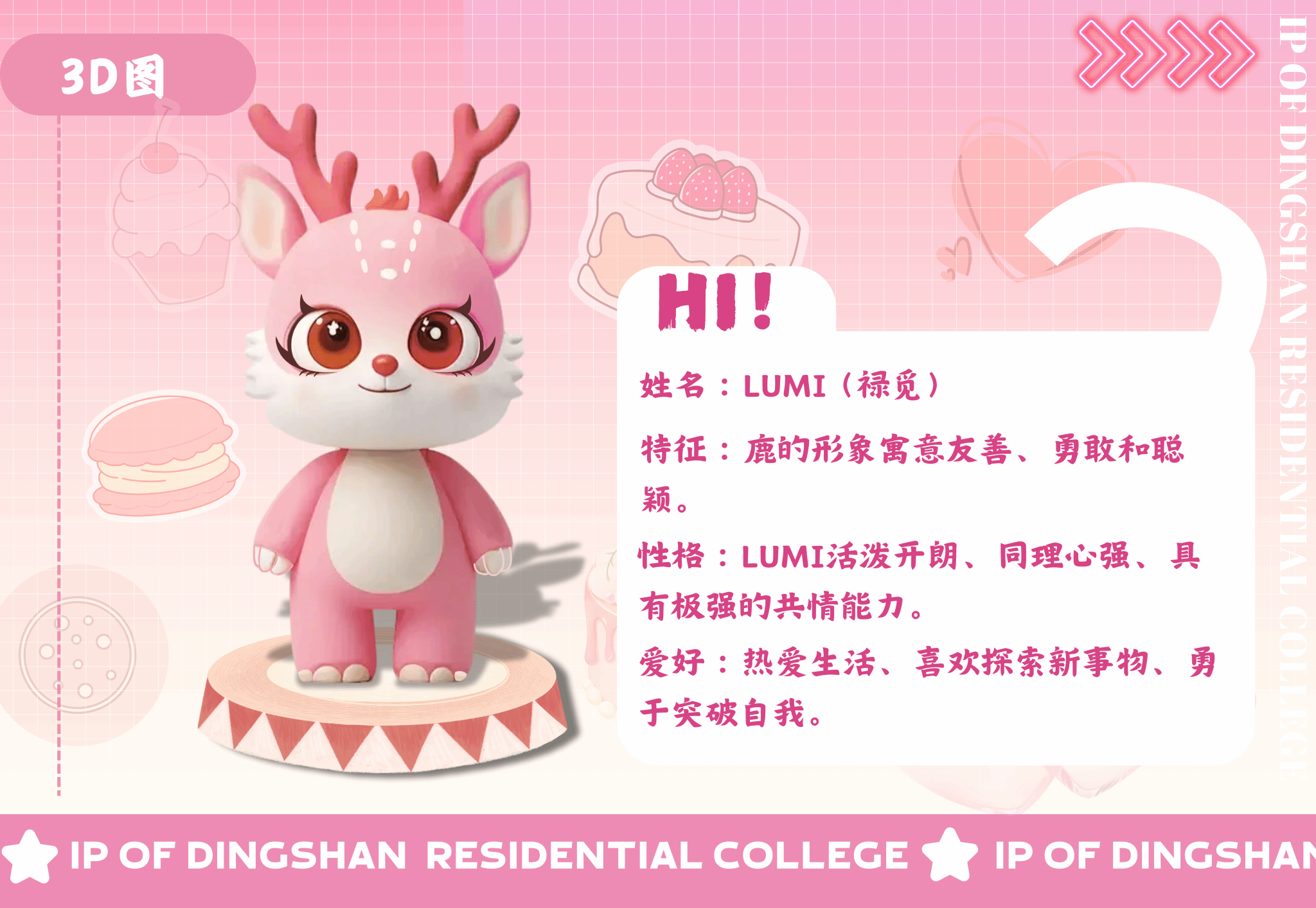 “Lumi这个名字可有来头啦!‘Lumi’取自英文‘Luminous’(发光体/璀璨之星),希望我可以和大家一起发现光、追寻光、成为光,探索无限可能的人生!中文名字‘禄觅’取自《诗经·小雅》中的《鹿鸣》诗篇——“呦呦鹿鸣,食野之苹”。其中的‘禄’象征着福气和好运,‘觅’则呼应着现代青年的求知探索精神,‘禄觅’连起来示意去追求发现那些在生活中不可或缺的幸福美好。怎么样,我可是一只能带来好运的小鹿!”