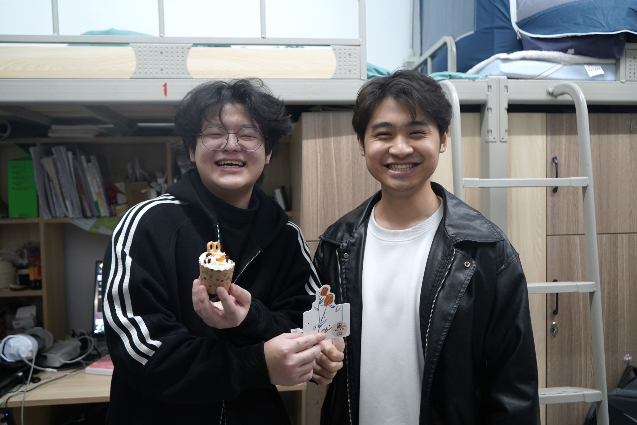 除了贺卡,每位庆祝生日的同学还收到了一块精美的小蛋糕。当导师们手捧蛋糕,轻柔地敲响寝室门的那一刻,同学们的脸上从惊讶转为瞬间绽放的笑容。许多同学刚接过蛋糕,便急不可待地与室友分享这份甜蜜。“6月份生日的有吗?”“10月份的呢?”同学们好奇的询问声此起彼伏,这份蛋糕与祝福成为见证同窗情谊与书院关怀的特别符号。