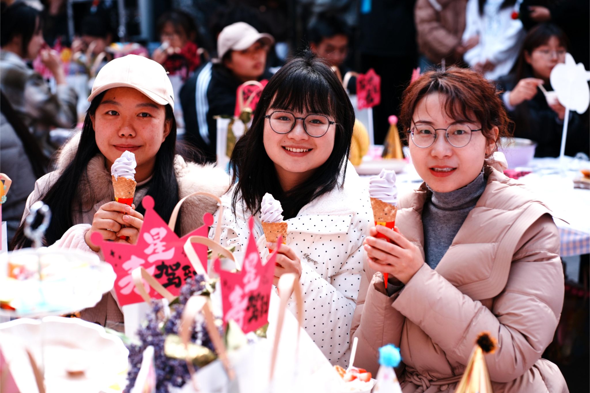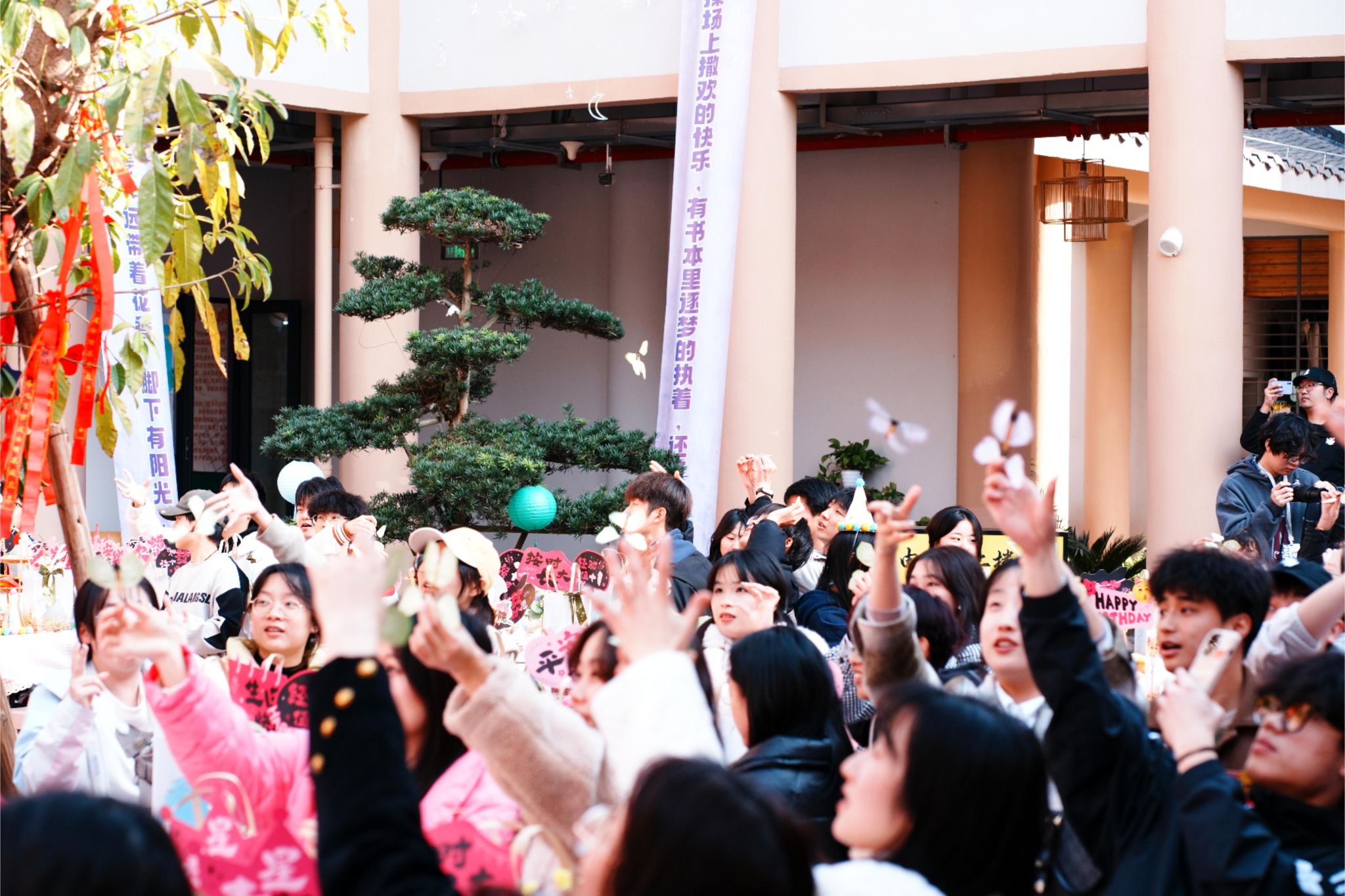 这场生日会不仅是时间刻度的仪式,更是一场关于生命力的礼赞。从玫瑰象征的个体绽放,到蝴蝶隐喻的蜕变新生;从代际交织的祝福,到传统手艺与青春活力的碰撞,无一不诠释着“陪伴与成长“的深层意义。正如活动负责人观云书院学生发展导师付正甜所言:“我们想告诉每位师生,教育不仅是知识的传递,更是共同创造温暖的体验。”这个充满花香与笑语的春日傍晚,已然成为校园记忆中一抹跃动的光亮。