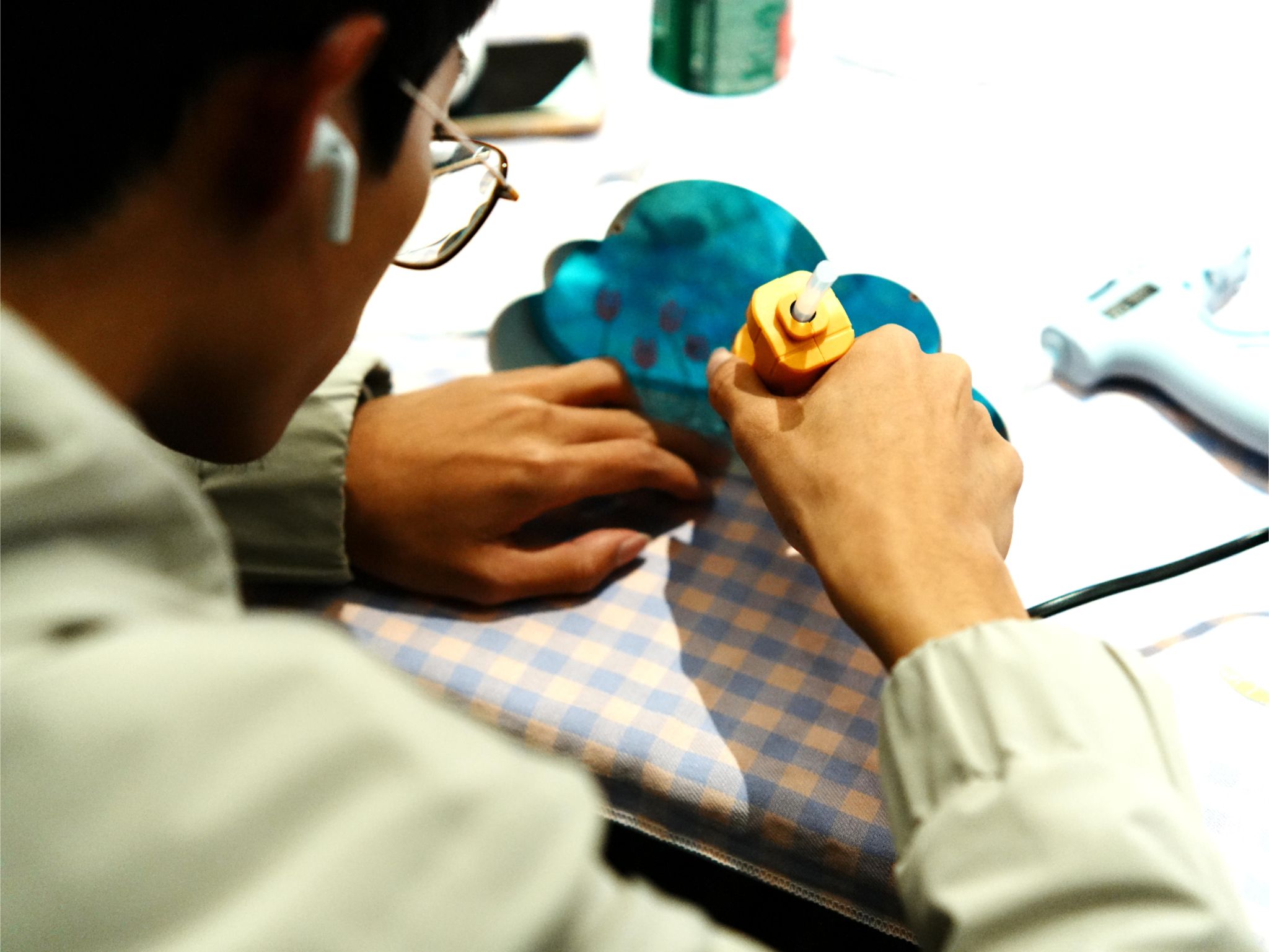 下午五时,随着主持人的倒计时,寿星们手指轻启,斑斓的蝶群振翅腾飞。为了保护生命,我们特意选择了机械蝴蝶。这场由师生共创的“未来羽化仪式”,以0能耗完成对传统放飞仪式的迭代,重译庄周蝶梦。在灯光与音乐交织,彩蝶在会场盘旋飞舞,似在共赴一场春日的约定,许多师生举起手机记录这一瞬的震撼。