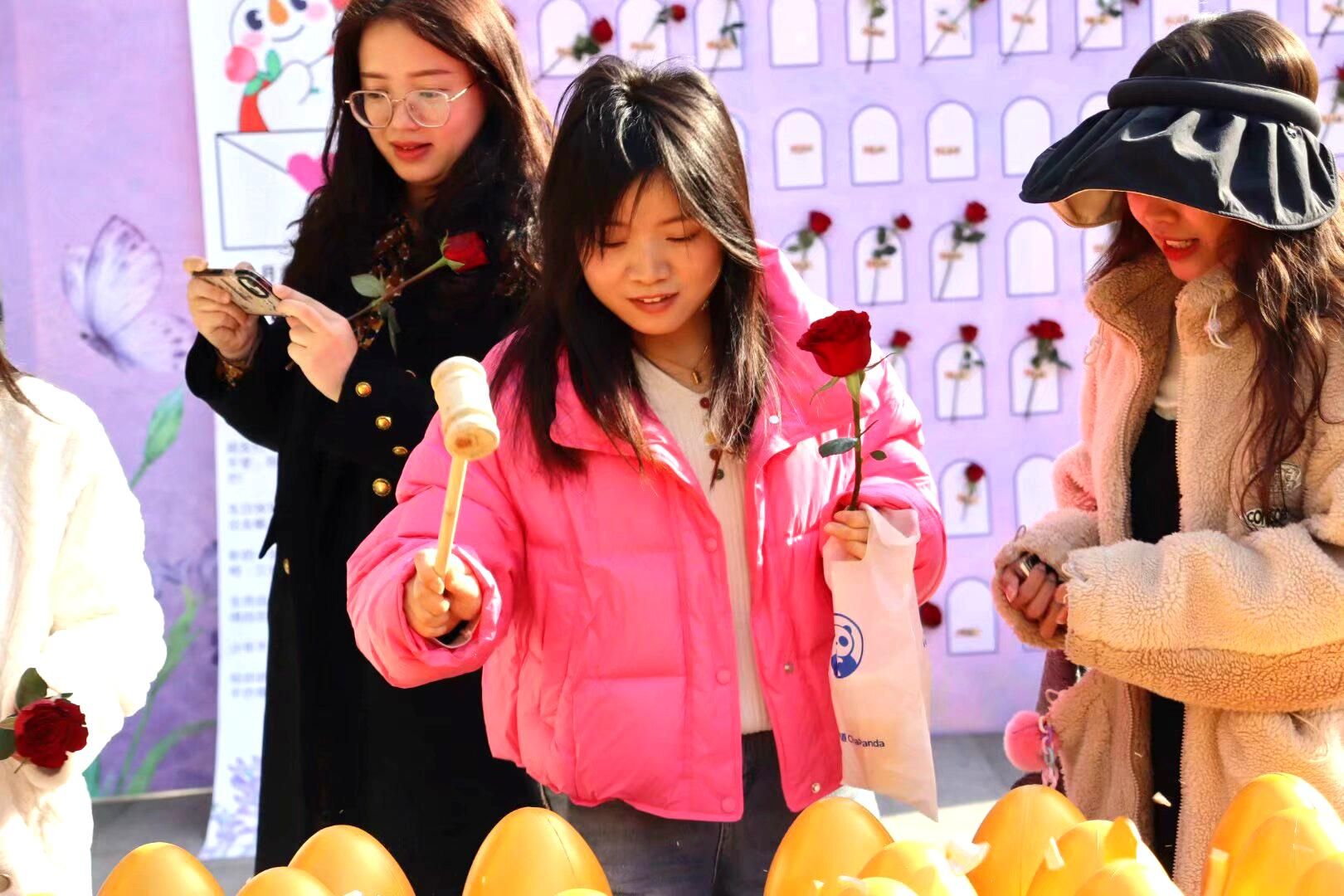 下午四时,寿星们陆续到场,生日会的序幕浪漫拉开。签到墙上100支玫瑰的芬芳与寿星们的笑脸相映成趣。这份精巧的仪式感为整场活动铺就了温暖底色。我们以玫瑰为媒介,让生活美学成为可触摸的教育现场,让每次指尖与花瓣的触碰,都成为教育诗篇的韵脚。与此同时,木槌与金蛋碰撞的脆响划破书院暮色。这场持续一小时的砸蛋狂欢,每一次的爆破,都是书院家人给到的温暖。