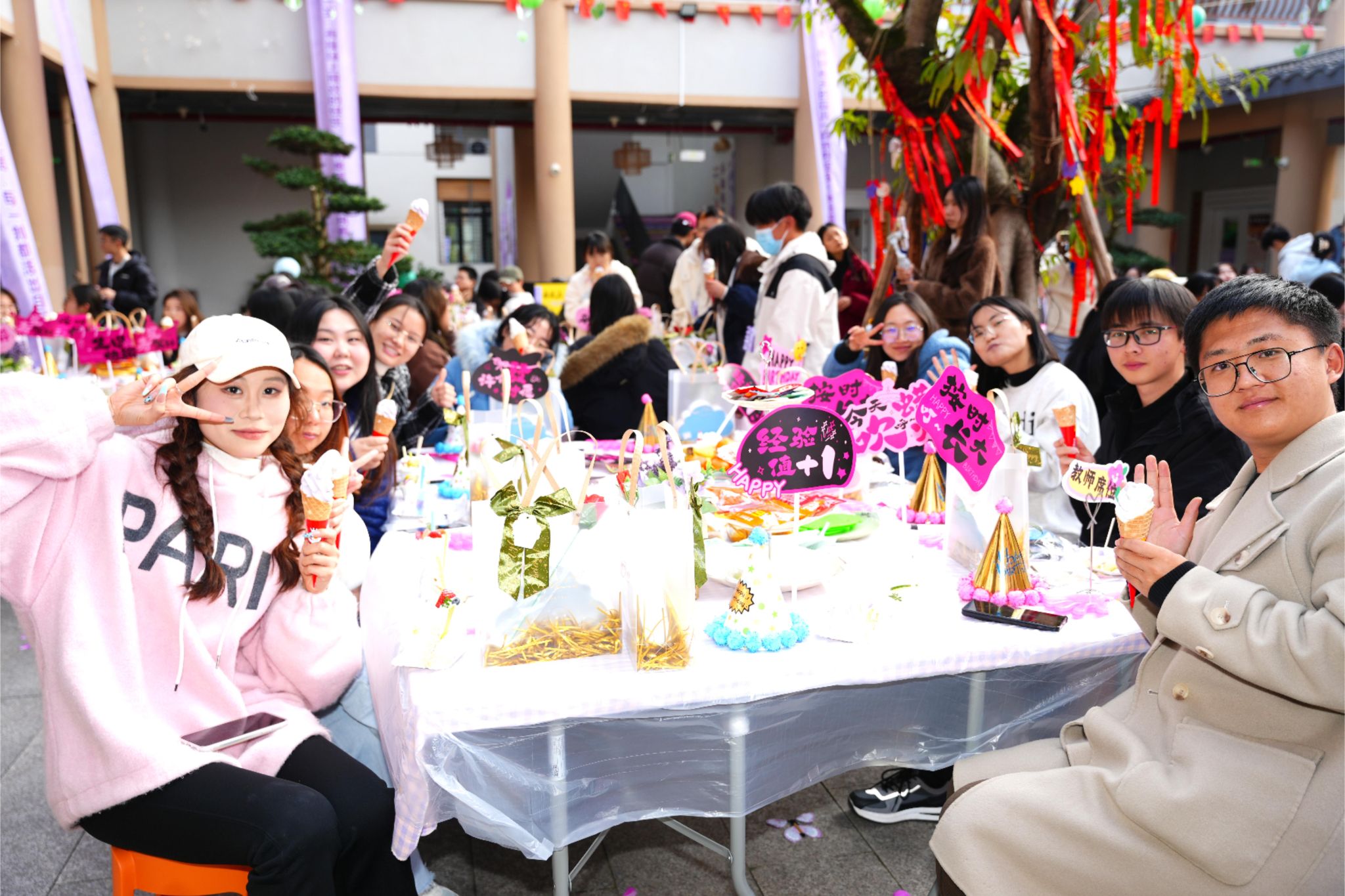 蝴蝶振翅而起,在春风中开启生日会诗篇的起承转合。以文化创意为经纬,将传统书院精神注入现代仪式场域。3月19日,由观云书院联合蜜雪冰城打造的“春风有花YOUNG”二三月师生集体生日派对,在重庆移通学院工会委员会、书院部的指导下圆满落幕。本场生日会用100支玫瑰、100份手作礼物、100个金蛋,破茧成蝶的仪式感,和“承包全场冰淇淋”的重磅彩蛋让现场“甜蜜超标”。
