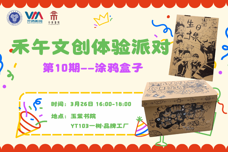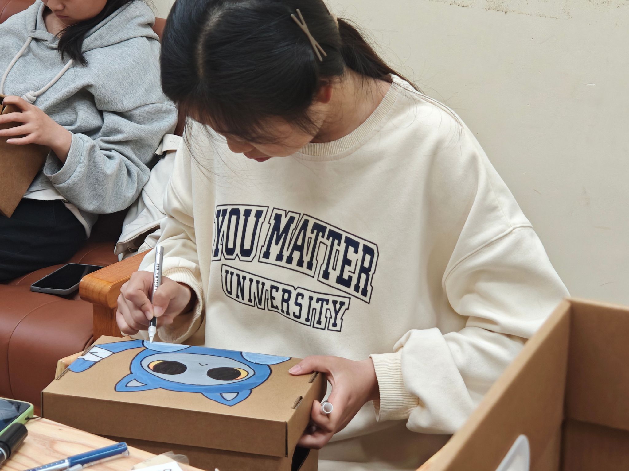 活动虽嗨,但意义更酷,禾午文创研究室作为玉棠书院的工坊,可不只是提供剪刀胶水的地方——它是让天马行空落地的“造梦车间”,是把校园文化变成潮玩的“IP孵化器”。这次涂鸦盒子派对,正是禾午“搞事情”的常规操作:用最低门槛吸引最多创意,再用最嗨的方式把玉棠文化“种”进大家心里。未来,这里还会蹦出许多惊喜,或许下期,你的随手涂鸦就会变成书院文创店的爆款周边。毕竟在这里,每个盒子都不止六面——它装着无限可能!