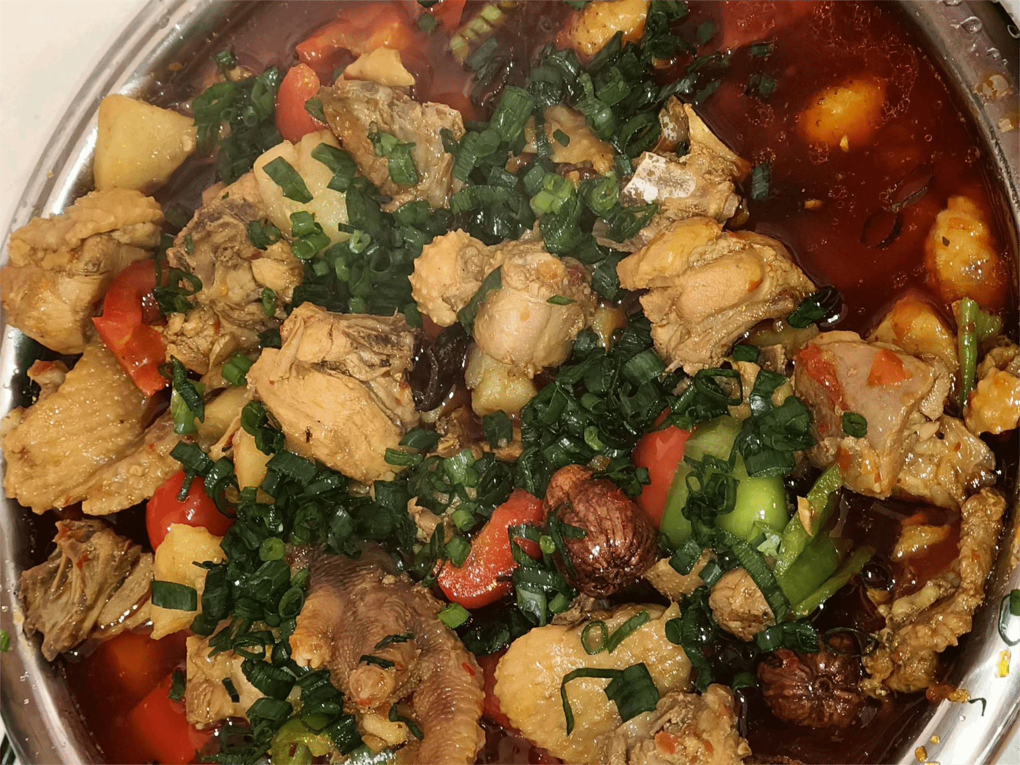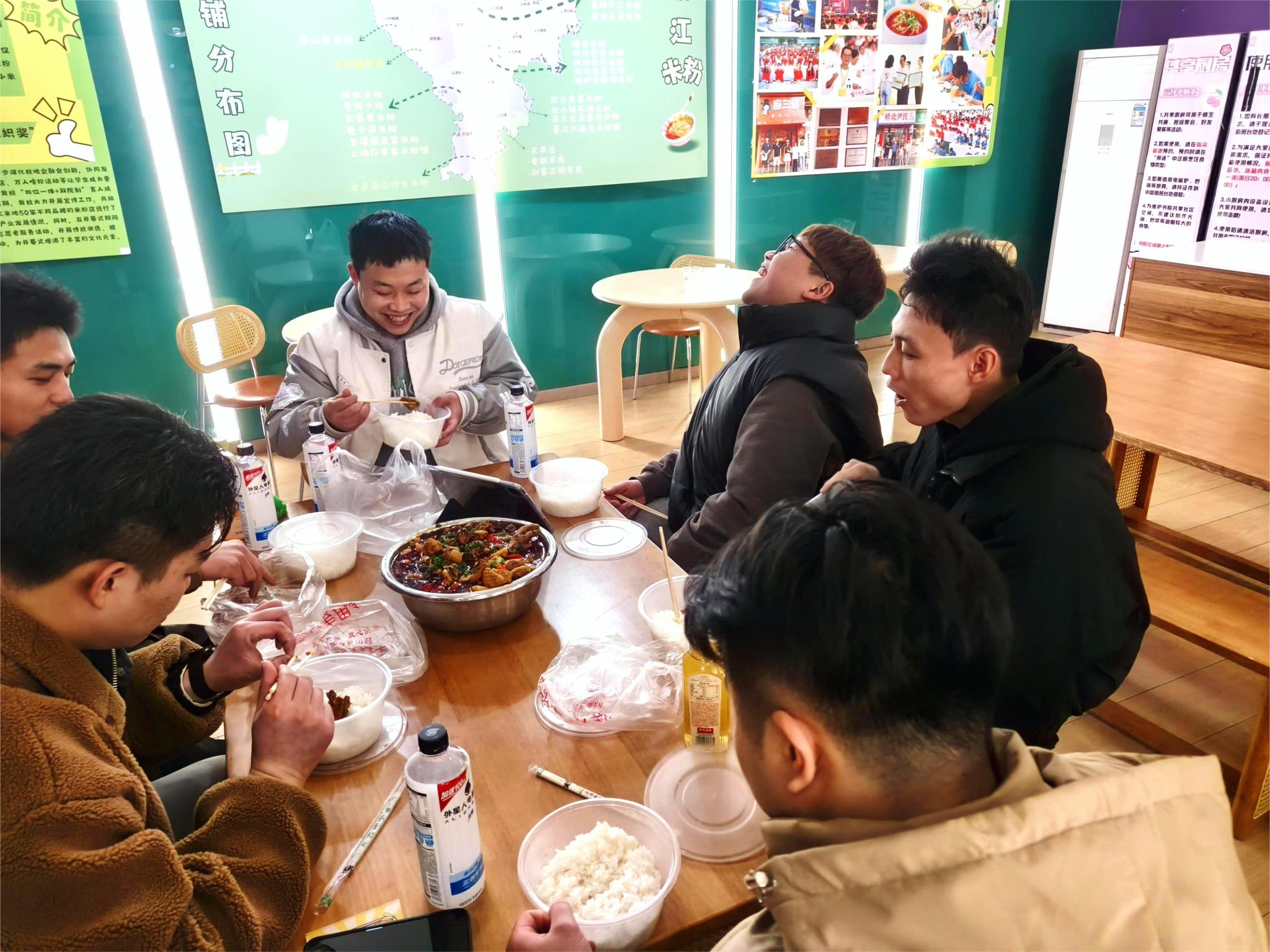 “土豆要滚刀切,肉块得裹上焦香!”活动伊始,软件工程专业的钱志鸿同学主动担任掌勺,向同伴们演示秘制大盘鸡的奥秘——热油激出鸡肉的豪情,辣椒翻炒出戈壁的热情,最后加入吸满汤汁的土豆,以“皮带面”收尾,引得满屋喝彩。掀开锅盖的刹那,蒸汽携着浓郁鲜香升腾。众人围坐共享美食,锅边的水渍与额角的汗水,都成了团结协作的鲜活注脚。