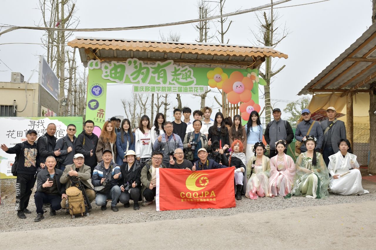 本次油菜花节创新推出“花田移动课堂”教学模式,将传统的教室授课转变为沉浸式场景教学。活动邀请綦江区摄影家协会的资深摄影师现场指导,与计算机学院映像美学工坊、戏影专业的学子们共同创作,将课堂搬到花田,实践拍摄技巧。百位摄影师,累计产出优质影像作品千余件。无人机在上空盘旋记录下金色花海的壮美画卷,与地面摄影家们捕捉的人物特写、环境人像等素材相互补充,共同构建起这场春日盛会的完整记忆。