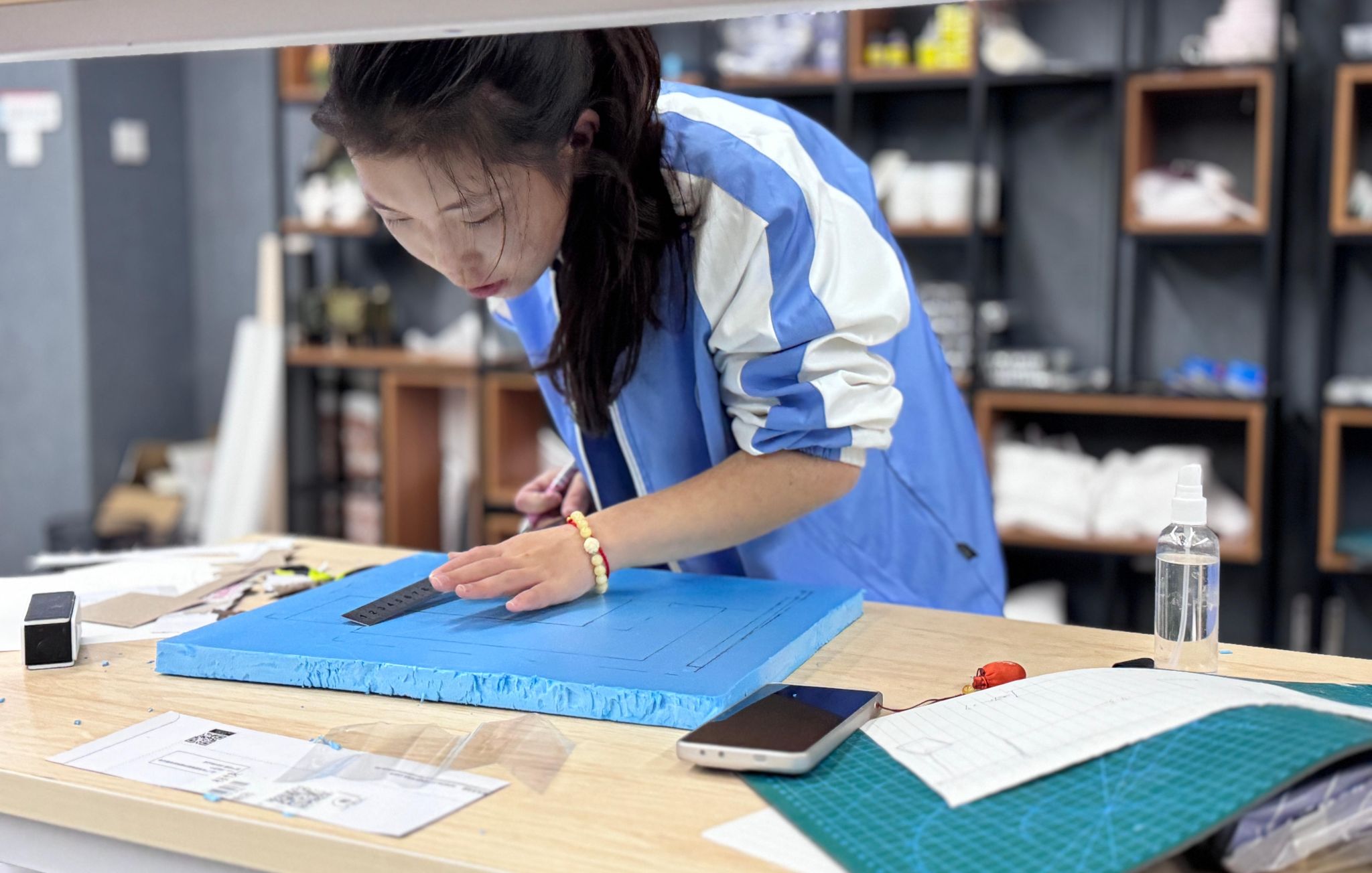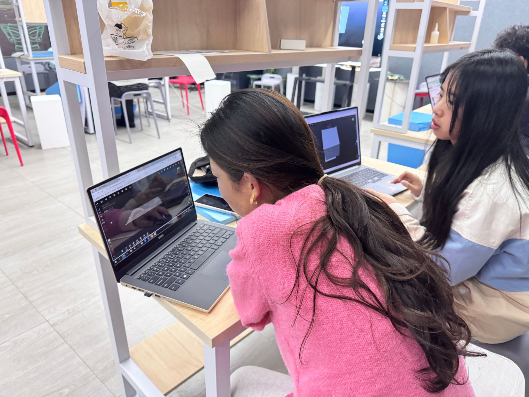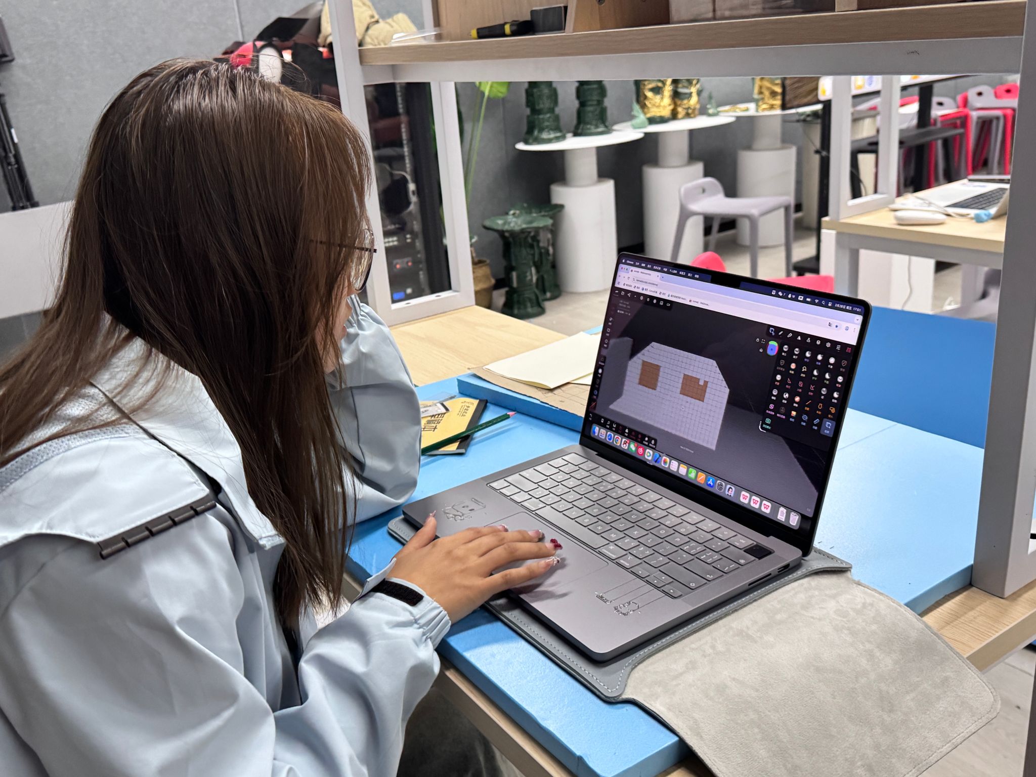 3月28日的实体创作课上,工坊变身为热火朝天的工作间。同学们以高密度板为主要材料,先将数字模型转化为精确图纸,再通过切割、打磨等工序逐步构建实体模型。面对材料拼接、结构稳定等技术难题,在谭老师指导和团队协作下,学员们一一攻克难关,在实践中提升专业技能。