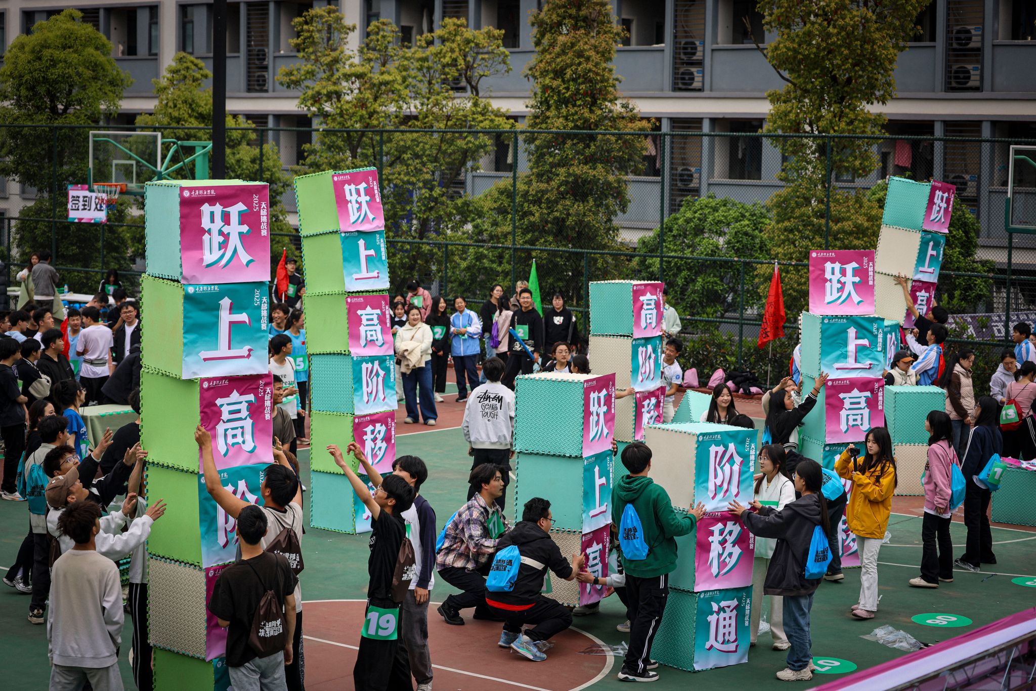 攀登永无止境,向上再塑巅峰。本届天梯挑战赛深度融合智慧、信任、勇气和速度等五大要素,创新推出智“筑”天梯、勇“攀”天梯、疾“速”天梯、团战天梯和飞跃天梯五大挑战关卡,通过考验团队超强执行力、耐力和协作力,见证个体潜能的多维突破。挑战过程中,参与者纷纷突破自我,争做团队英雄。他们有的化身基建狂魔,突破思维壁垒、巧辟路径,共同搭建起团队的智慧高塔;有的化身蜘蛛侠,克服恐惧、勇攀高墙,在心跳加速中刷新登顶纪录;有的化身闪电侠,穿越障碍、抵达顶峰,与时间竞逐跑出青春的速度与激情;有的还充当彼此的左膀右臂,凝聚力量、挑战极限,用“人体传送带”战术解码“木棍搭桥”硬核赛道。在师生们的一次次欢呼中,项目记录在刷新、个人体能在刷新,青春的更多可能性也在持续刷新。