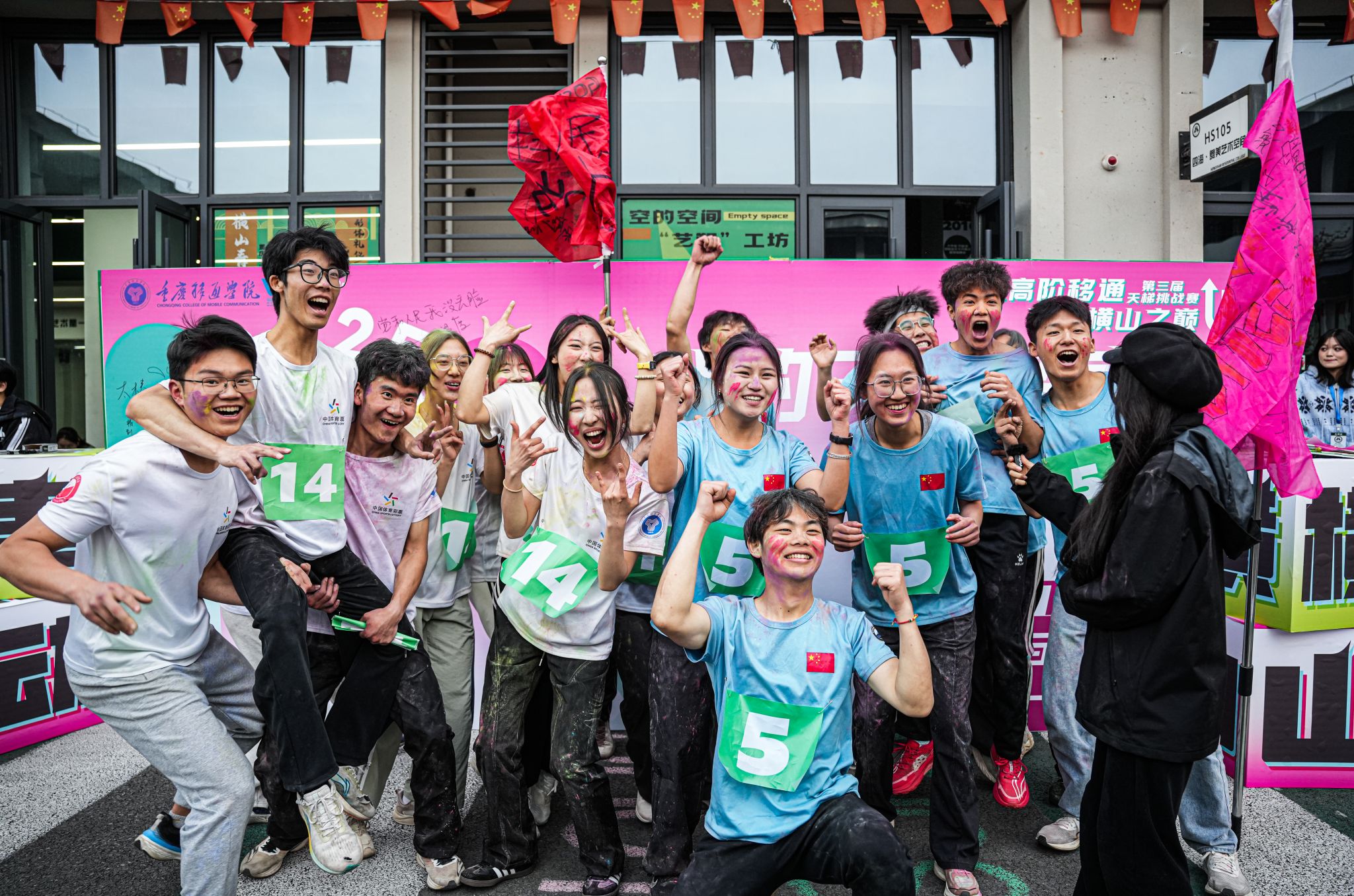 “去年我大一他们不带我玩!今年我终于能来了!”颁奖台上,一位满身彩粉的大二选手紧紧捧住奖杯,眼里闪着不服输的光。