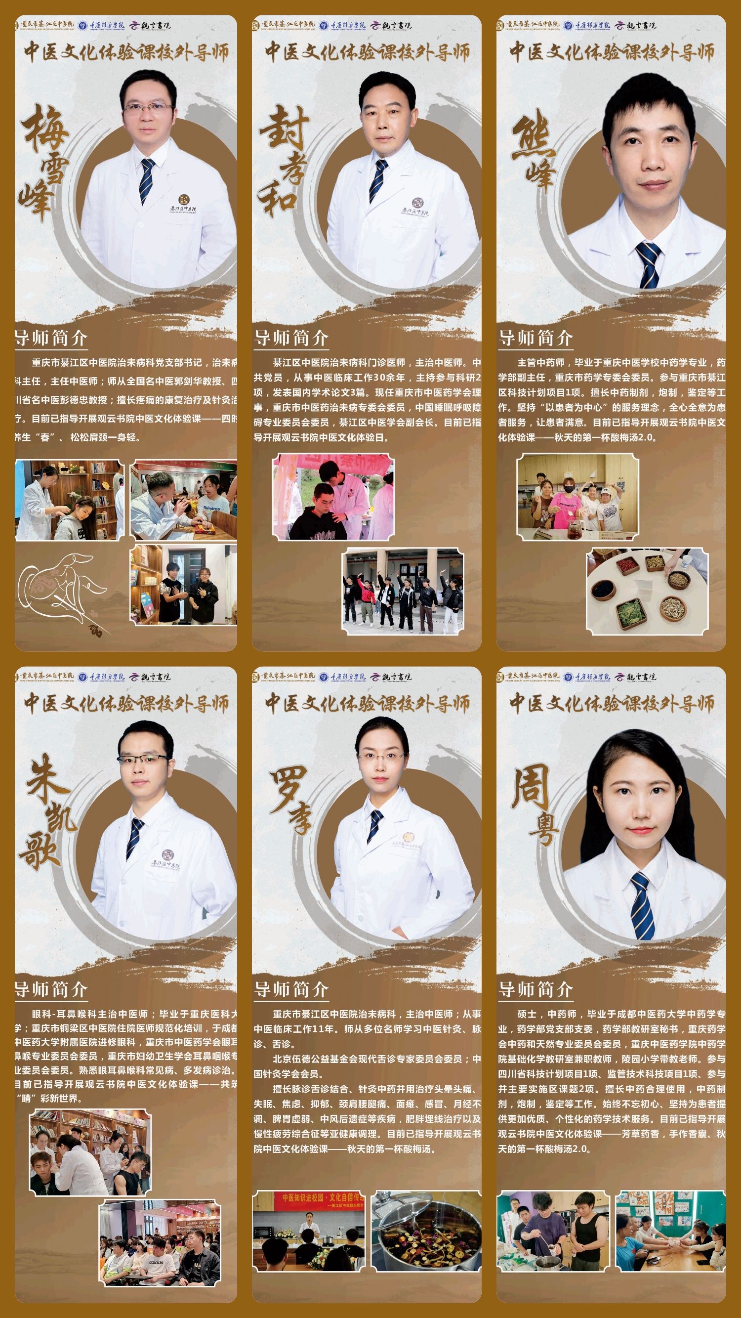 中医文化体验课:由綦江区中医院副院长易文博、治未病科主任梅雪峰、药剂科主任周粤等10余名綦江区名中医领衔作为校外中医导师,开展每月一期的特色中医文化体验课课程,推动中医药文化进入移通校园,在普及中医文化的同时,帮助同学们养成健康的生活方式和行为习惯。同时借助中医院资源,观云书院开展了大型活动中医文化体验日活动。4月25日,第二届中医文化体验日活动将于与全校师生见面。