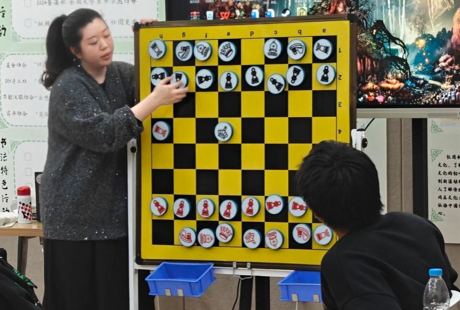 一是教学深度拓展。象棋班结合《适情雅趣》古谱与《孙子兵法》,在“屏风马布局”中透析战略思维;国际象棋班精选世界冠军对局视频,把西西里防御的弹性攻守转化为团队策略沙盘;围棋班教学用磁贴复盘"镇神头"经典手筋,寻找神之一手。
