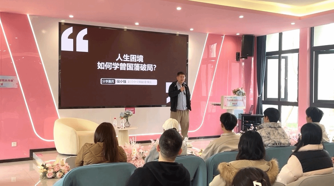 “师者,传道授业解惑也”,4月2日,丁山书院名誉院长侯小强于丁山书院DS107射手座·多功能空间以“人生困境如何学曾国藩破局”为题开展名誉院长精品课,他结合个人经历及晚清名臣曾国藩的处世哲学与当代人生的实践启示,从中提炼出6大“秘密武器”为同学们寻找破解人生迷局的方法。