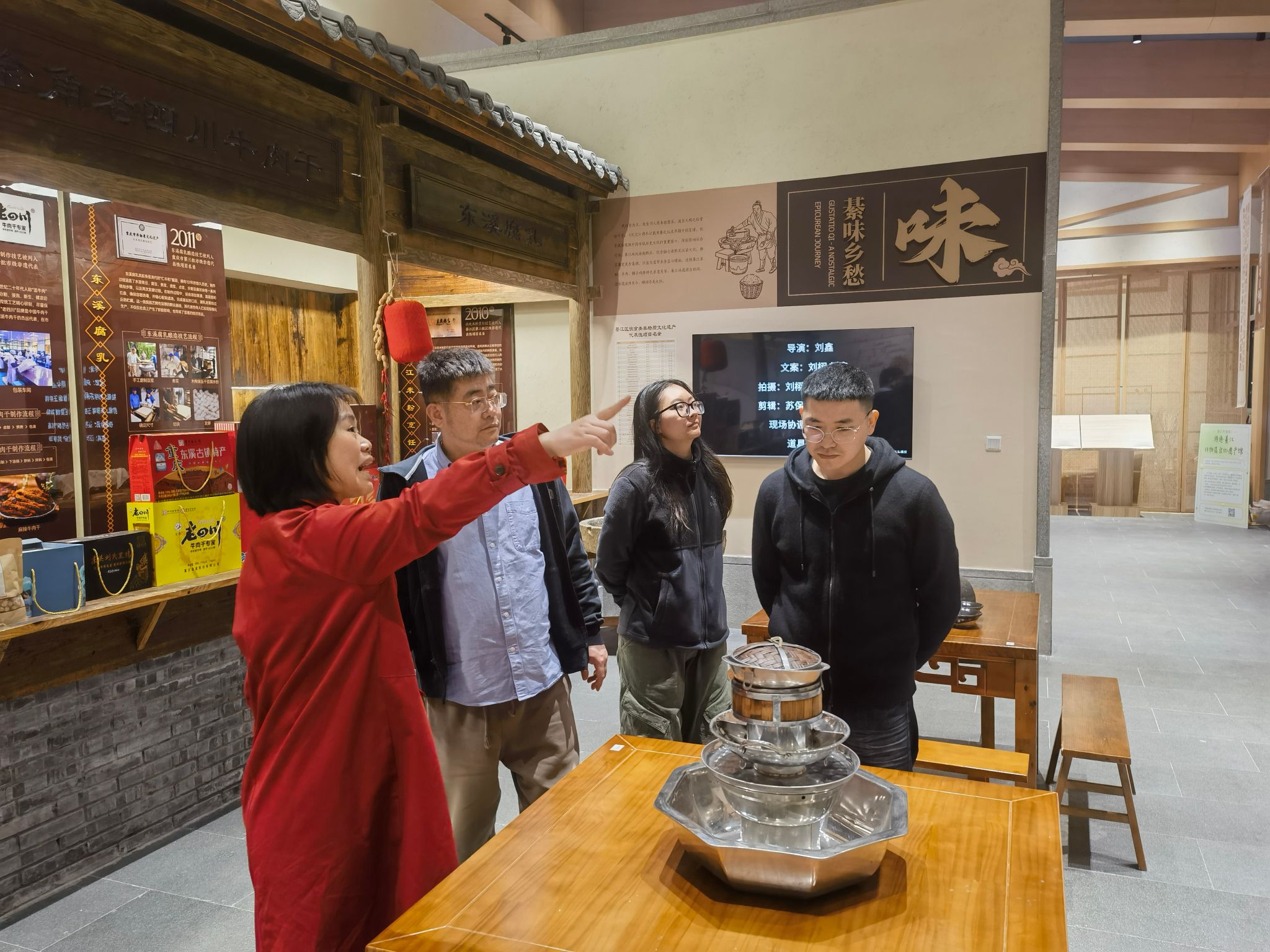 在为期两天的行程中,侯小强院长也先后和老师同学们进行了校内的参观和用膳。在介绍我校独有的万画影城巨幕厅和非遗馆后,谢校长介绍道:“地域文化与城市发展研究院是第一个真正意义上的高校自主‘校地共建’非物质文化遗产展馆,馆内收录了綦江本土的众多非物质文化遗产在。”