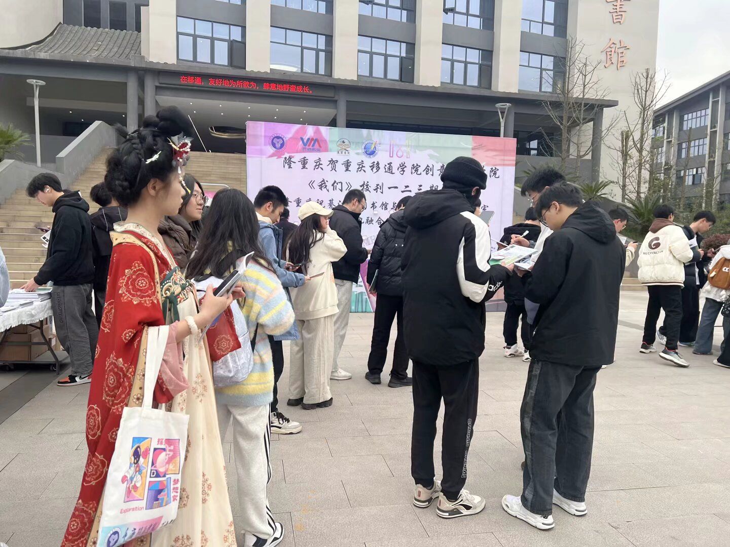 为深化校园文化建设,促进校地文化融合发展,2025年4月2日,由綦江区文化和旅游发展委员会指导、重庆移通学院綦江校区联合主办,创意写作学院(綦江校区)、瀛溪书院、綦江区图书馆以及綦迹文化产业工作室共同承办的“记录青春足迹,书写我们的故事”——《我们》青春校园杂志系列阅读推广活动,在重庆移通学院綦江校区明善图书馆前广场隆重拉开帷幕!