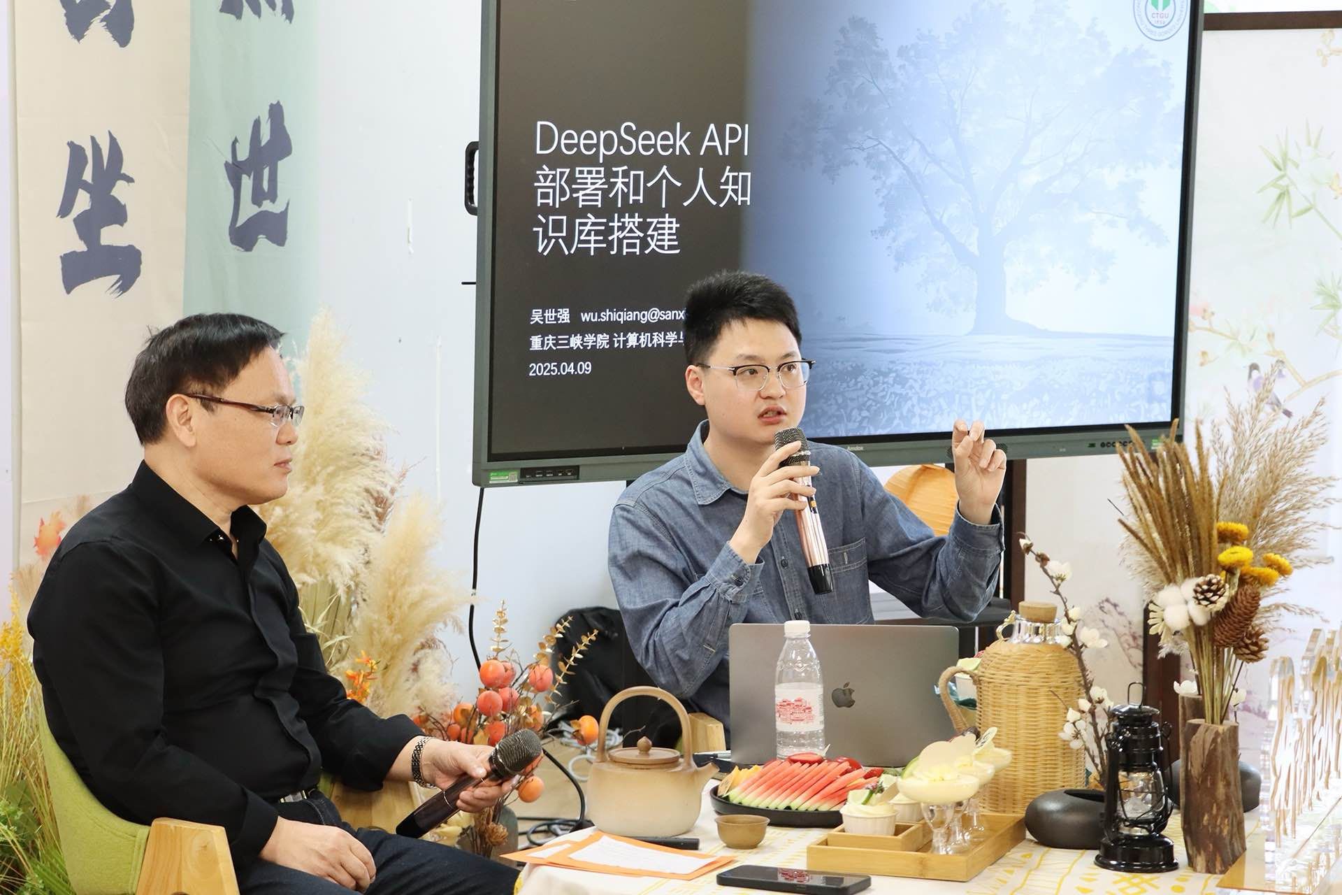 在人工智能技术加速迭代的背景下,大模型技术突破与AIGC(人工智能生成内容)浪潮正重构知识生产与管理范式。为了帮助同学们更好地理解人工智能技术的发展趋势,掌握前沿技术在知识管理中的应用,提升个人知识管理能力,4月9日瀛溪书院非正式空间开展了第四十六期围炉夜话。重庆三峡学院计科学院院长冯玉明,博士吴世强围绕“人工智能前世今生”这一主题,与来自各专业的学子们共同揭开AI时代知识管理的新篇章。重庆移通学院计算学院副院长林泽金作为对话嘉宾,和两位嘉宾通过历史脉络与技术实操的双重视角交谈活动主题。