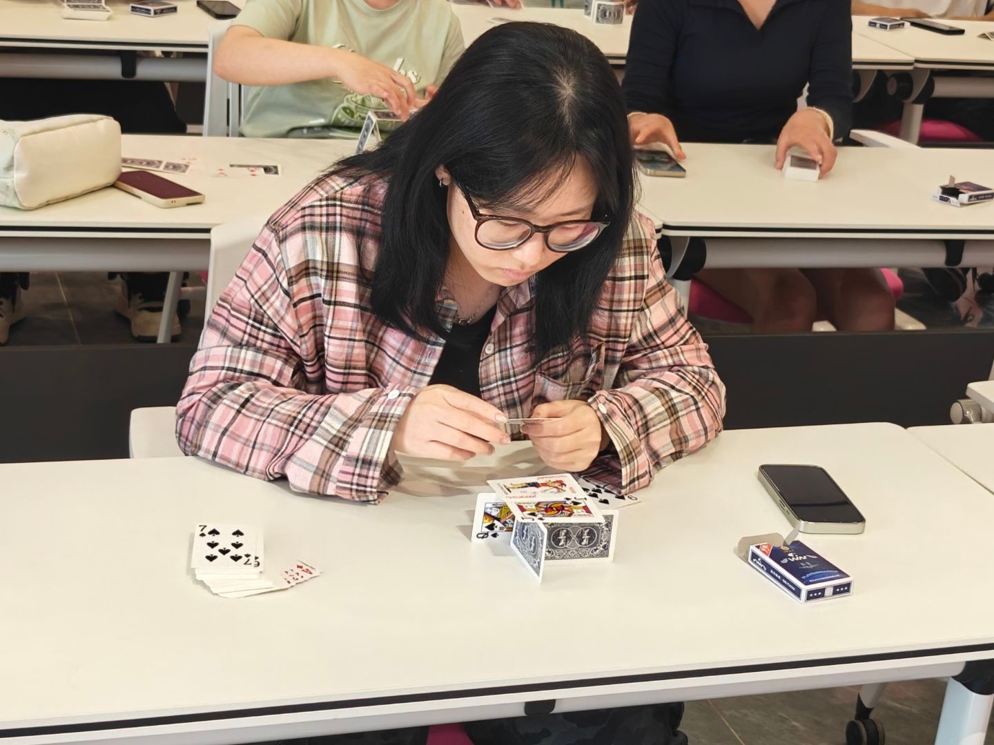 纸牌堆叠,成就力学之高塔,于巧手中绽放科学之花。丁山书院于4月16日在DS203白羊座演讲培训室与同学们一同进入了“力学魔法屋”,引导同学们利用自己的心灵手巧,在摇晃的纸牌中寻找支点,尝试冲破重力的桎梏。