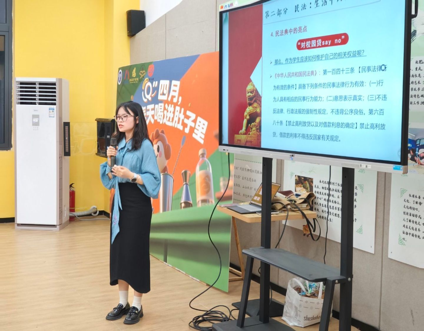 活动伊始,马克思主义基本原理教研室白余凤老师通过原理教学和案例解析等凡是,为同学介绍了宪法、民法和刑法等重要法律知识。同学们通过宪法知识学习,深刻认识到宪法作为国家根本大法的至高地位。白老师结合“国家宪法日”的设立意义,引导同学们思考宪法与公民权利义务的关系。民法素有“社会生活的百科全书”之称,同时也是市场经济的基本法。通过对《民法典》的解读,同学们对民事权利的保护有了更深刻的理解。例如“禁止高利放贷”等条款的学习,则让同学们认识到法律既是维护权益的盾牌,也是规范行为的准绳,在日常生活中必须树立契约精神和诚信意识。刑法则是维护社会秩序、打击违法犯罪的有力武器。白老师通过真实案例警示同学们“法律红线不可触碰”。同学们不仅了解了刑事责任年龄等基本概念,更通过侮辱国旗国徽罪、侵害英雄烈士名誉罪等特殊罪名的学习,深刻认识到维护国家尊严和社会公序良俗是每个公民的责任。