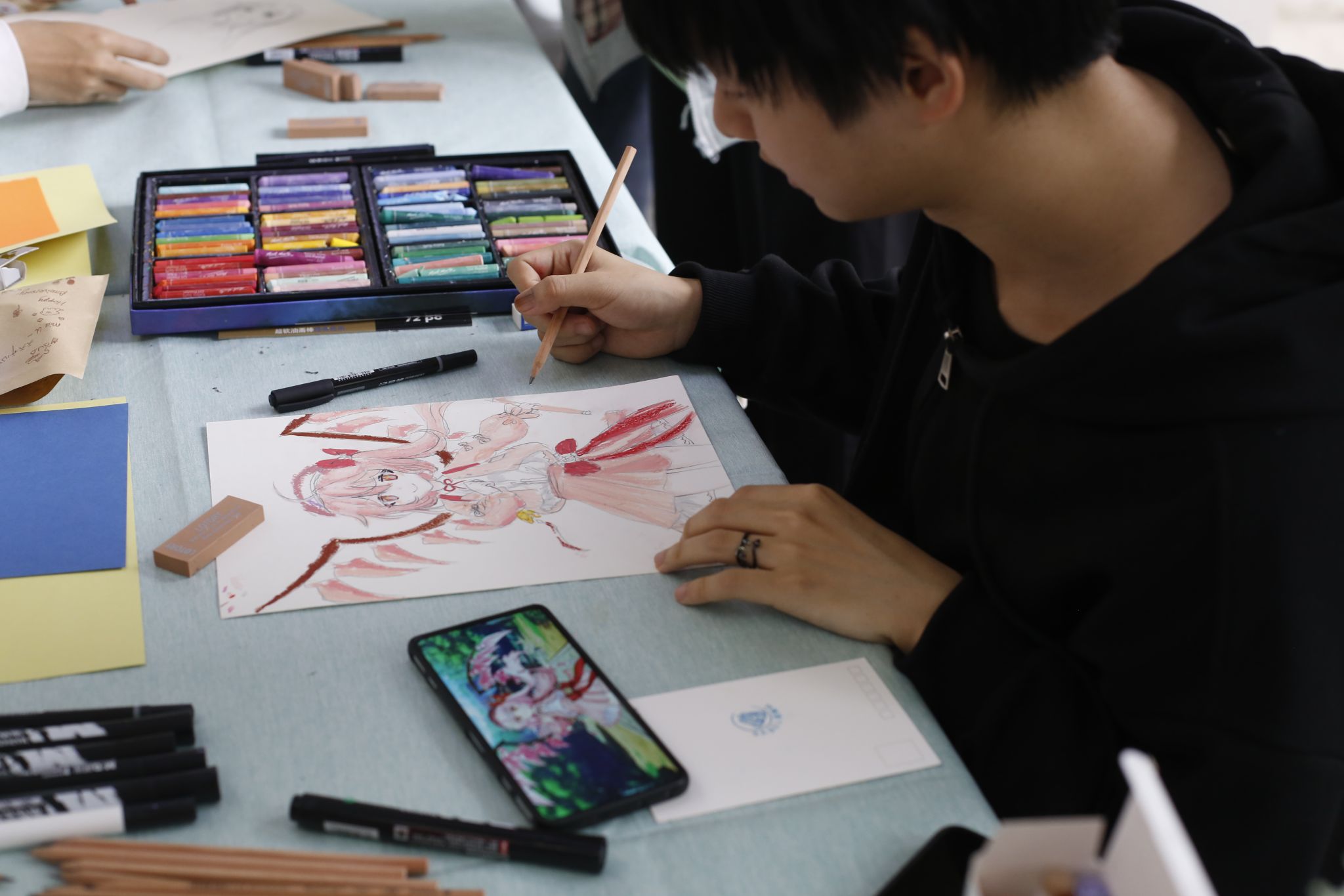 在绘画区,每位同学的每一笔都是对生机的礼赞。无论是描绘春风拂过的柳树还是少年少女温柔的侧脸,个人作品最终都会被拼接成一幅「书院“漫”景」,展现移通学子心中的春天。无论是绘画高手还是零基础爱好者,斑斓的色彩与自由的线条,终将汇聚成专属于这个春天的美好画卷。
