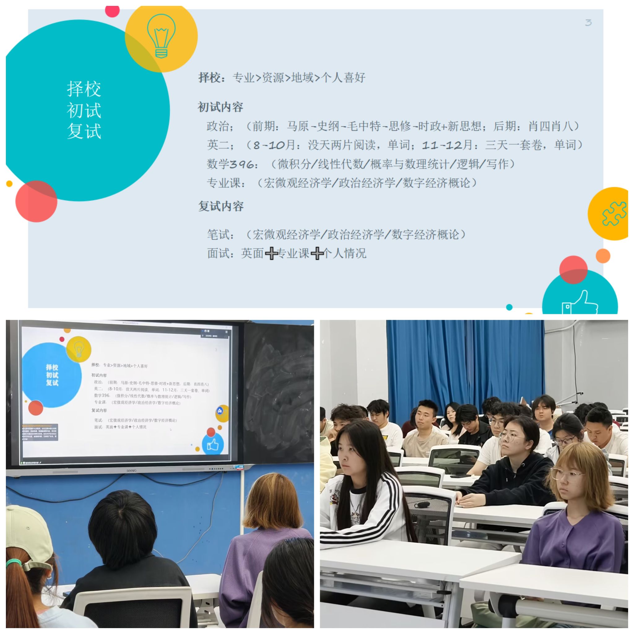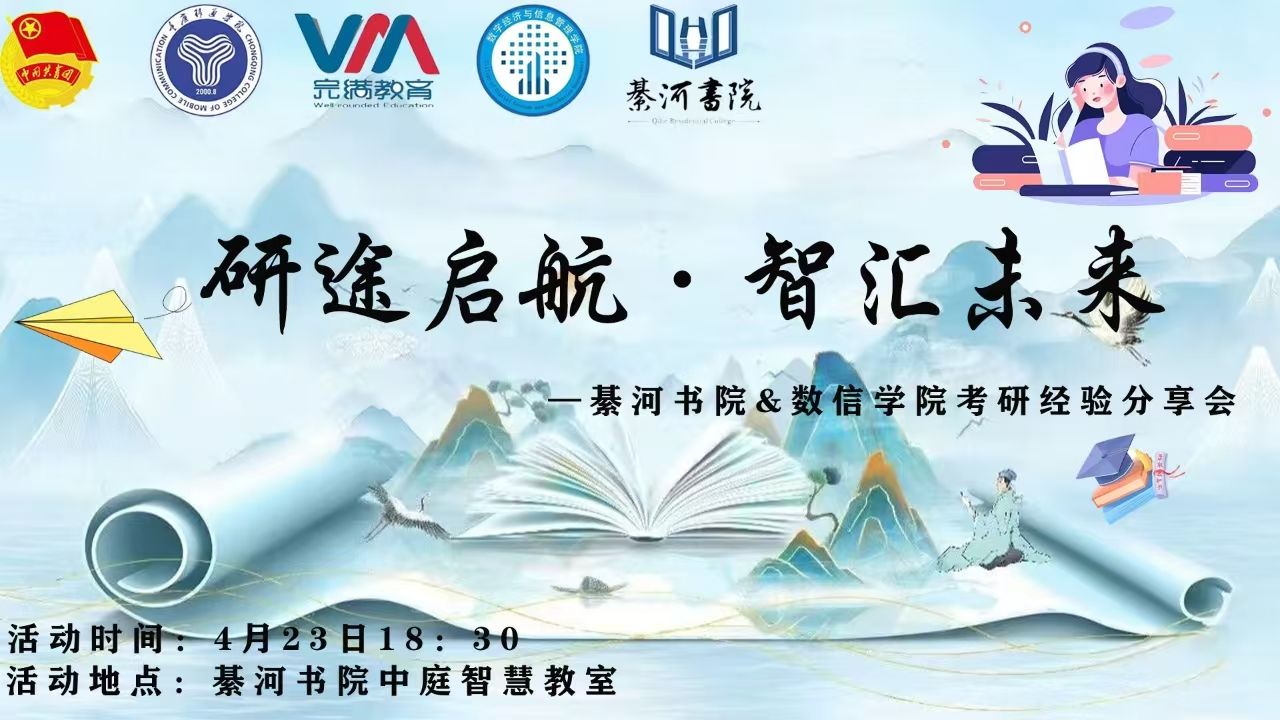 为助力同学们明确考研方向、科学规划备考路径,4月23日晚,綦河书院与数字经济与信息管理学院联合承办,数字经济工作室、数字经济协会协办的“研途启航·智汇未来”考研经验分享会在綦河书院2号楼智慧教室举行。