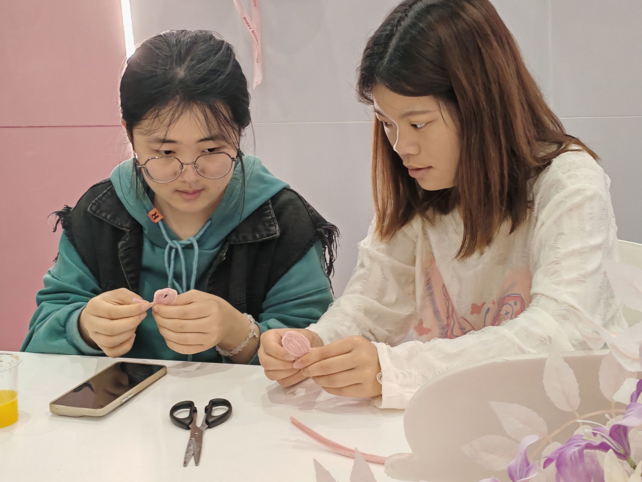参与者们充分发挥创意,通过缠绕、拼接、塑形等手法,将扭扭棒塑造成了一朵朵栩栩如生的立体绒花。这些由同学们共同制作的扭扭棒花朵,为整个活动增添了一抹独特的春色。