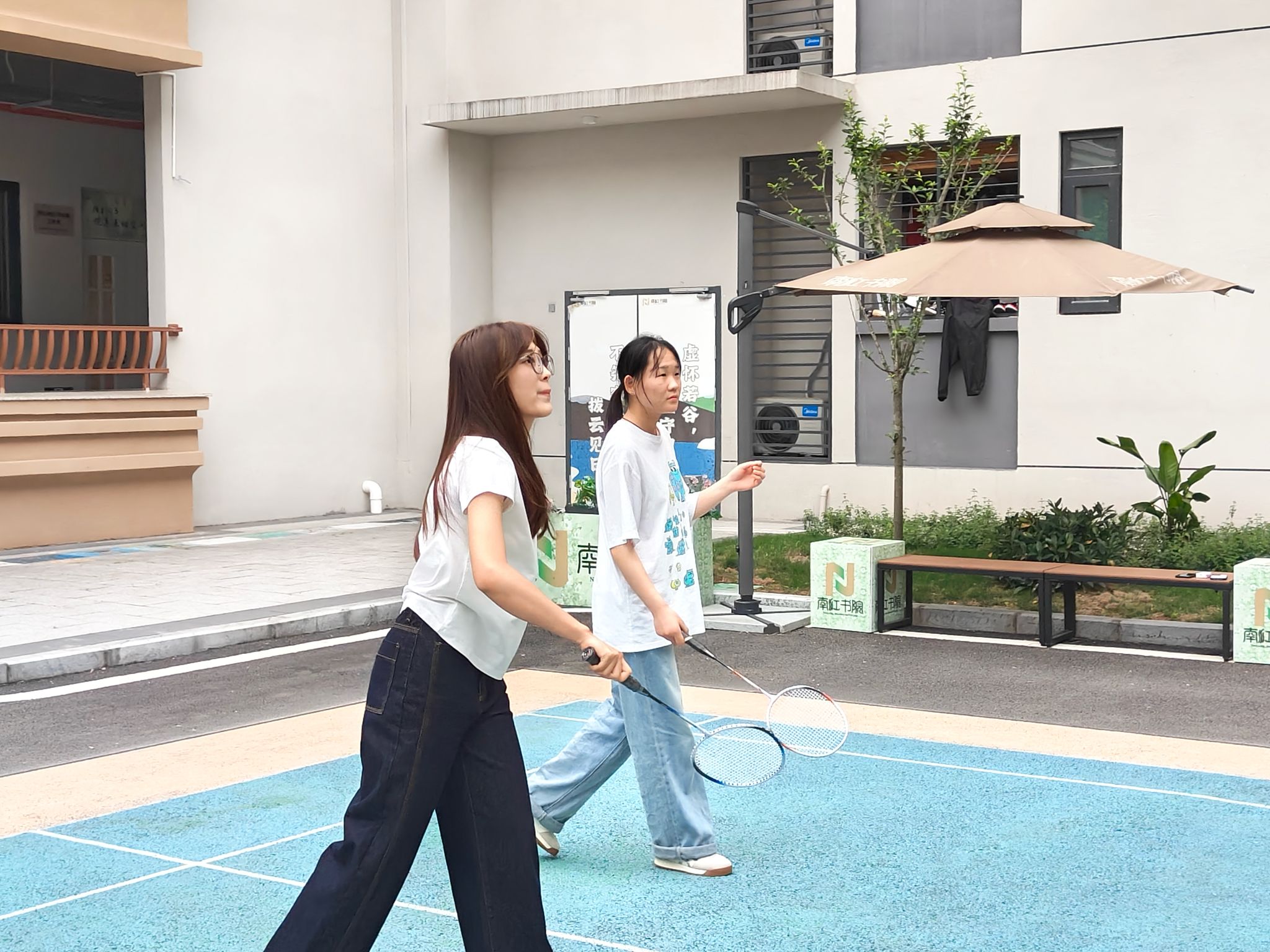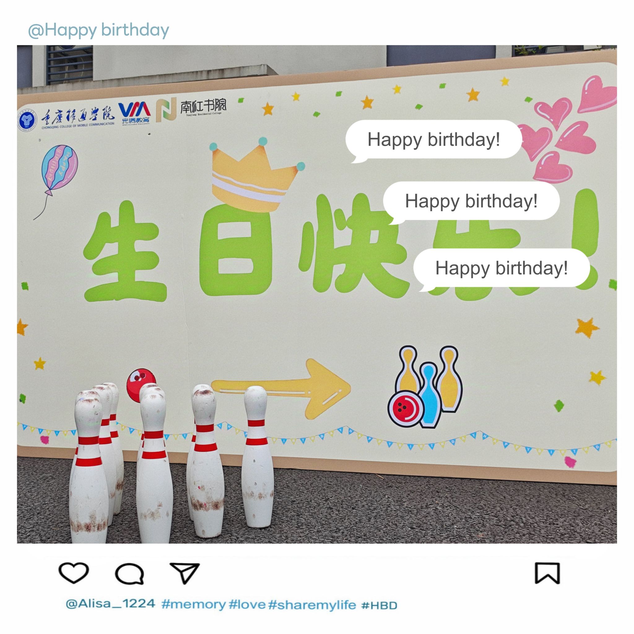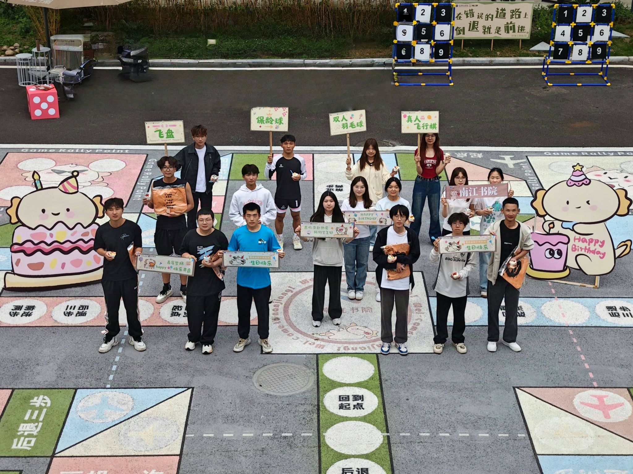 “今天好凉快,好适合运动!”生日会现场,室外空间幻化为洋溢着欢声笑语的活力竞技场。羽毛球呼啸而过,凌厉的轨迹彰显着青春的蓬勃力量与热血激情;保龄球滚动,沉稳有力,每一次撞击都似敲响奋进的鼓点,诠释着无畏的拼搏精神;飞盘在空中划过优美弧线,成为团结协作的生动注脚,展现出默契与信任的力量;真人飞行棋区域,参与者依循规则在巨型棋盘上移步,每一步都饱含对未知的期待,紧张与兴奋交织,为活动增添独特魅力。多元运动项目积极响应全民运动号召,为同学们搭建了释放活力的平台,让大家在兴趣中找寻乐趣,沉浸式体验这场欢乐聚会。