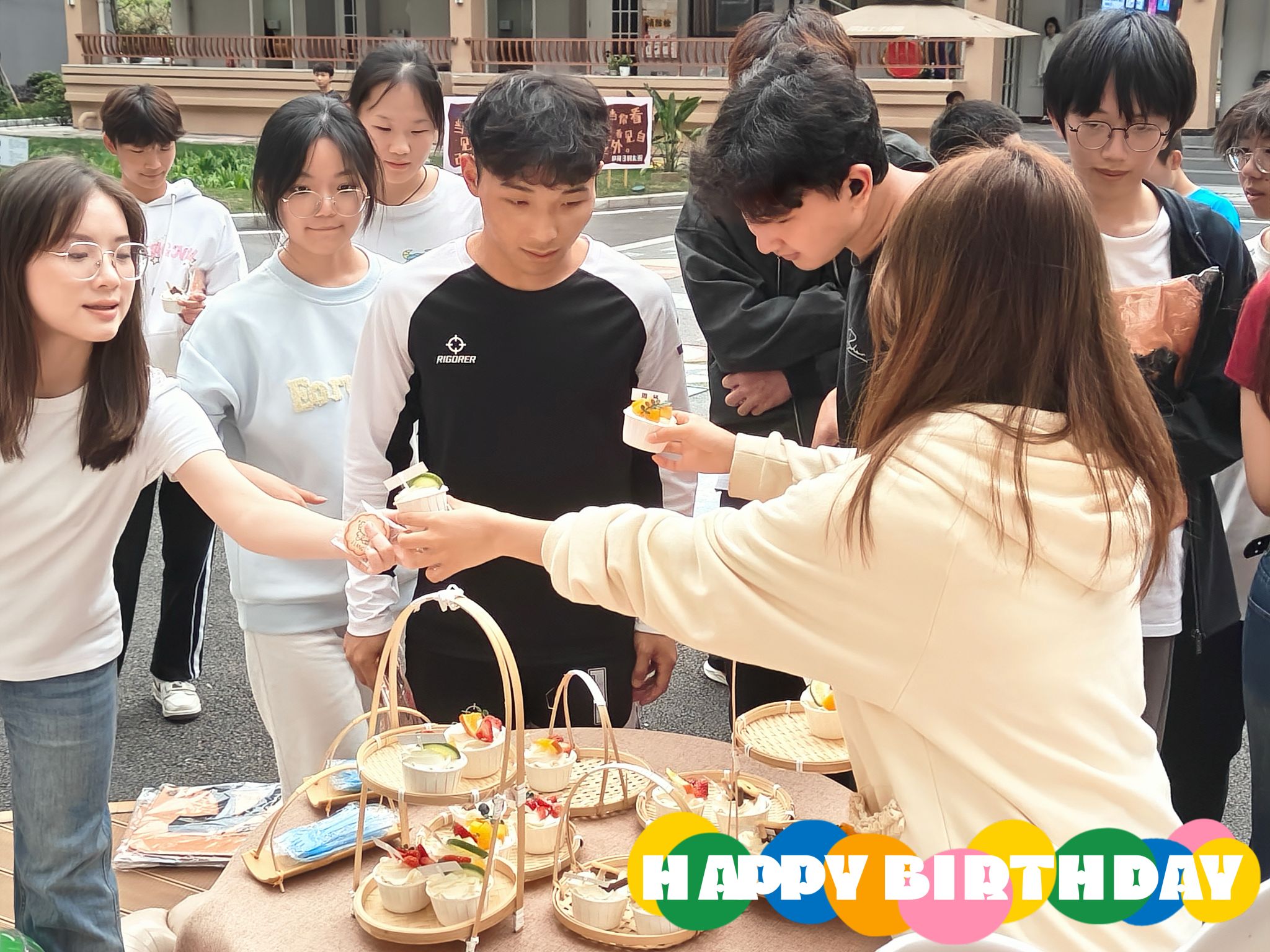 生日蛋糕是生命成长的美好象征。"祝你生日快乐"的旋律响起时,30份定制蛋糕惊艳亮相——每块奶油裱花间都藏着一枚闪光的姓名牌。这一贴心之举,承载的不只是生日的诚挚祝福,更让寿星切实体悟到书院无微不至的关怀,彰显书院朋辈间互动成长的深厚情谊。当寿星们举起这份独一无二的甜蜜"碰杯",成长的仪式感与书院的人文关怀在此刻完美共振。这场简约而温馨的仪式,让南江学子深切领略到“书院如家”的融融暖意。