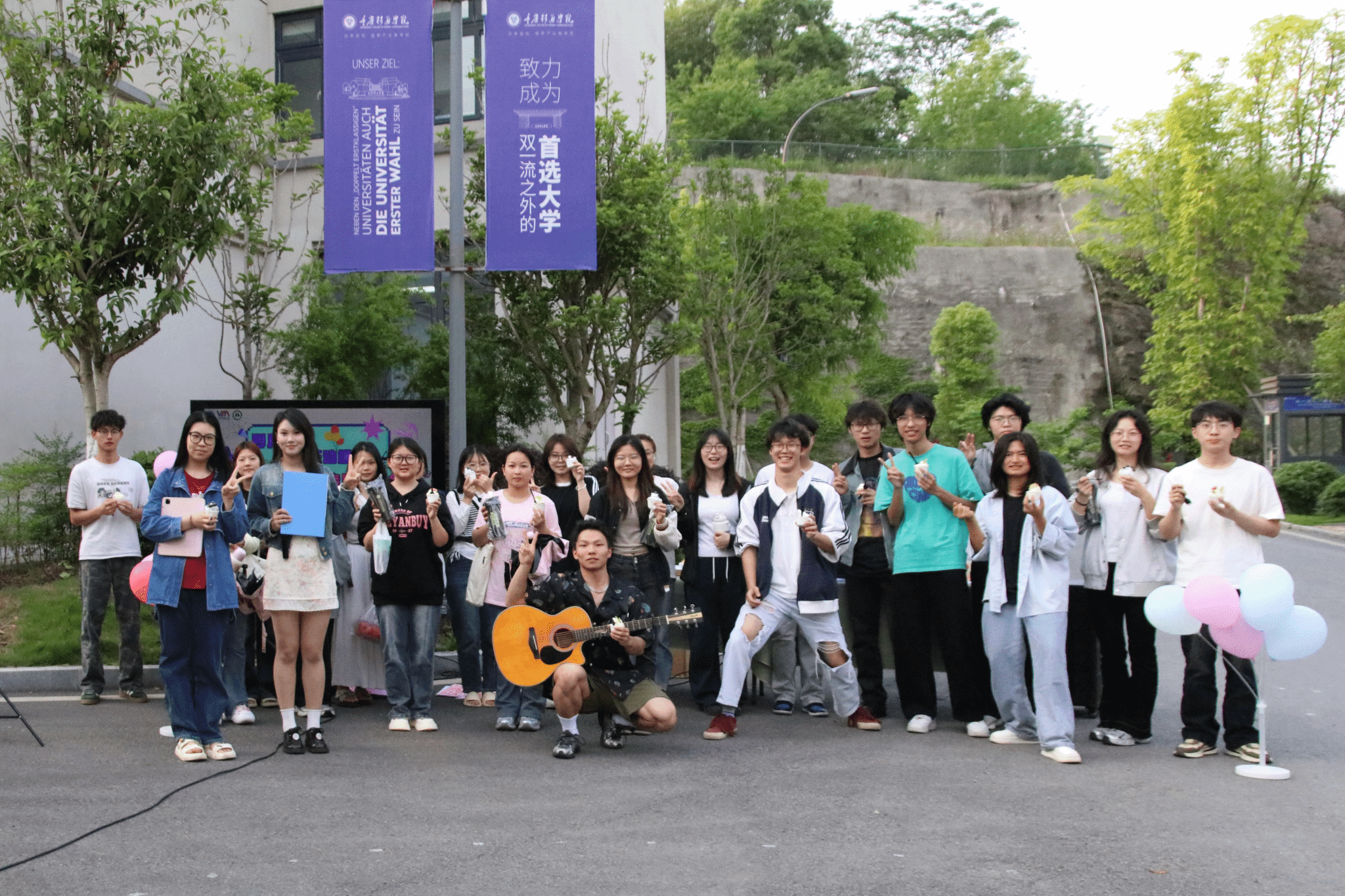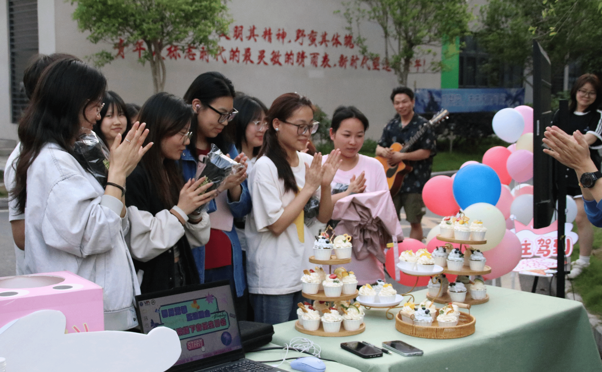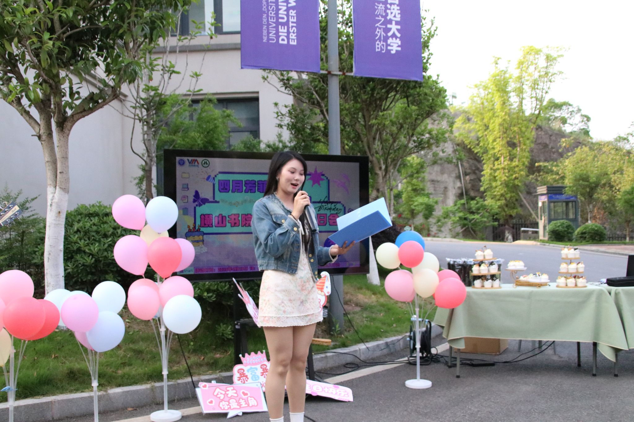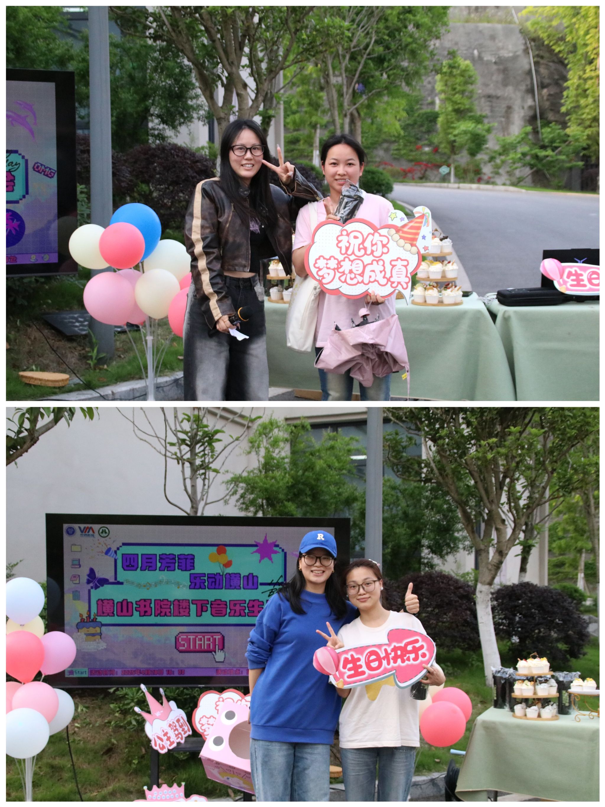 为营造书院温馨的家园文化氛围,增强学子在日常互动中对书院的归属感及认同感,横山书院于2025年4月28日18:00在横山书院主出入口处精心策划了一场“楼下音乐生日会”。活动以“四月芳菲·乐动横山”为主题,四月寿星师生齐聚横山,用最朴实真诚的歌声为四月寿星送上最真挚的祝福。这场小而精致的音乐生日会,以悠扬旋律编织温暖纽带,以欢声笑语构筑心灵港湾,让学子们在专属祝福中收获书院的倾情礼赞,在共情共鸣间体悟到书院作为成长家园的温情守望。