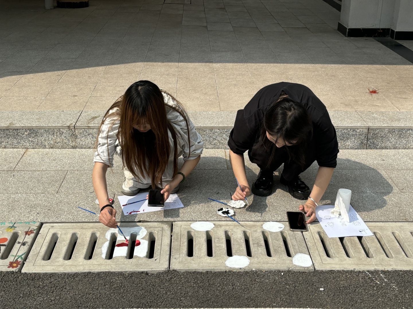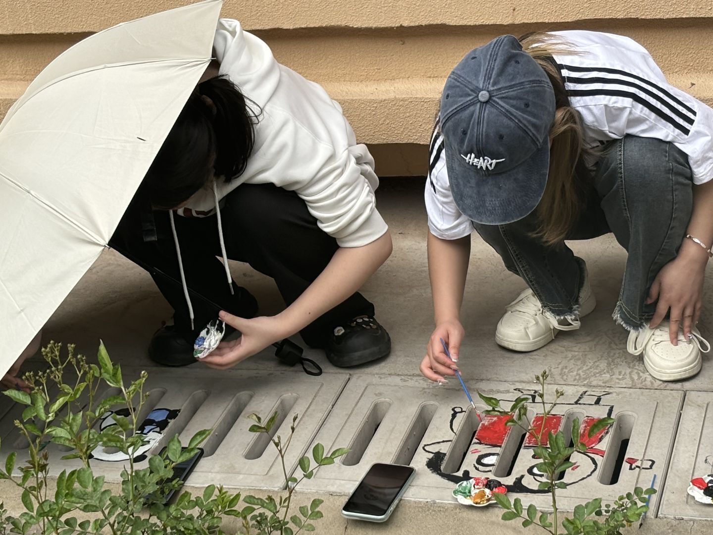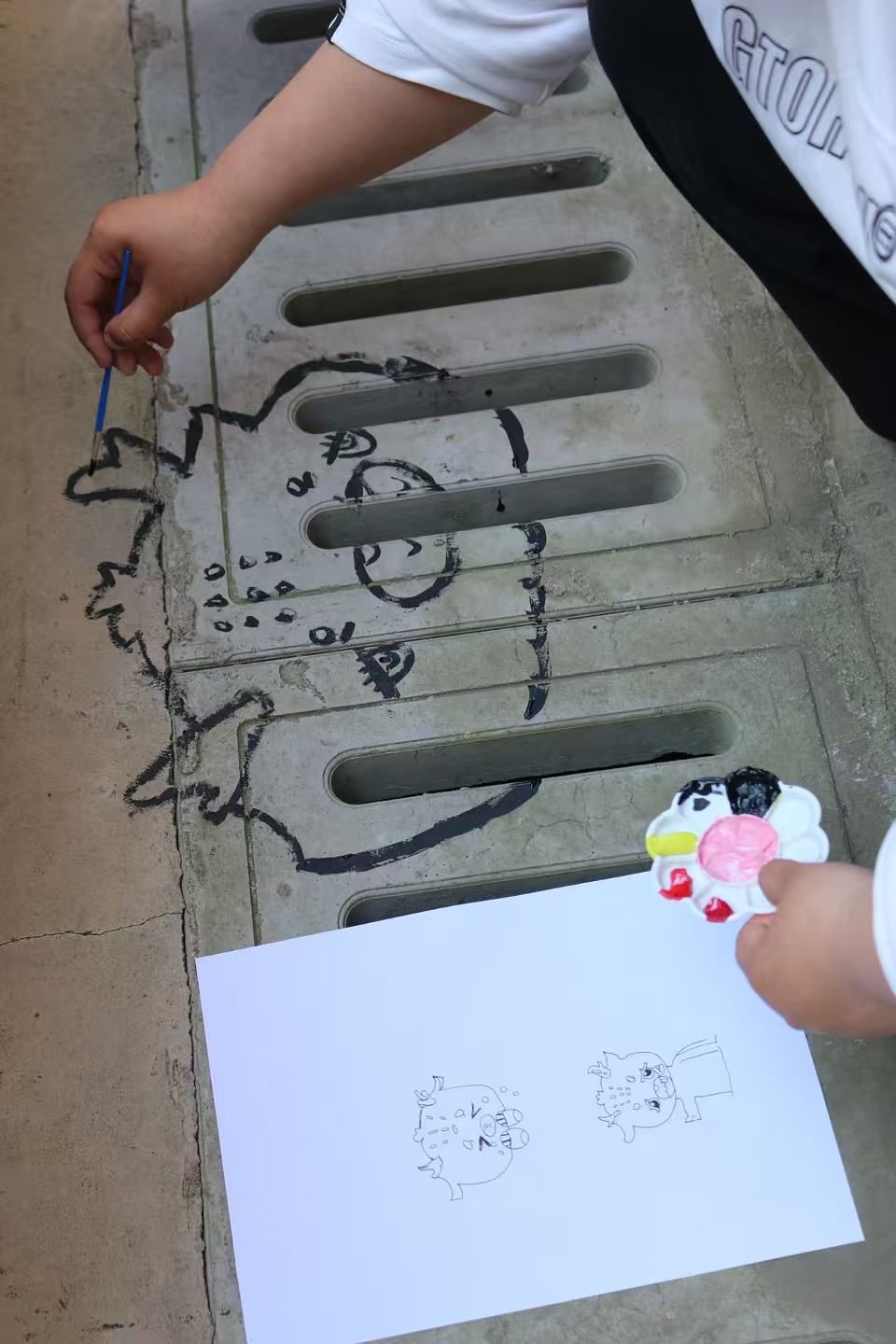 3月21日第一期活动以“卡通动物”主题,同学们化身“空间魔法师”,为中庭排水渠披上新装。垂耳兔的灵动、长颈鹿的优雅、狮子的威严,在同学们的彩笔下跃然渠间。青春的足迹与书院的温暖于排水渠上交织。