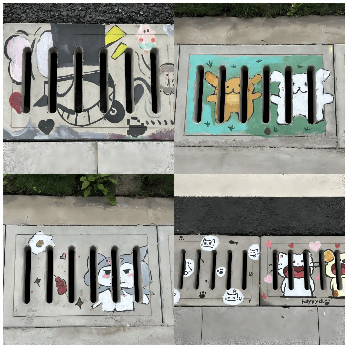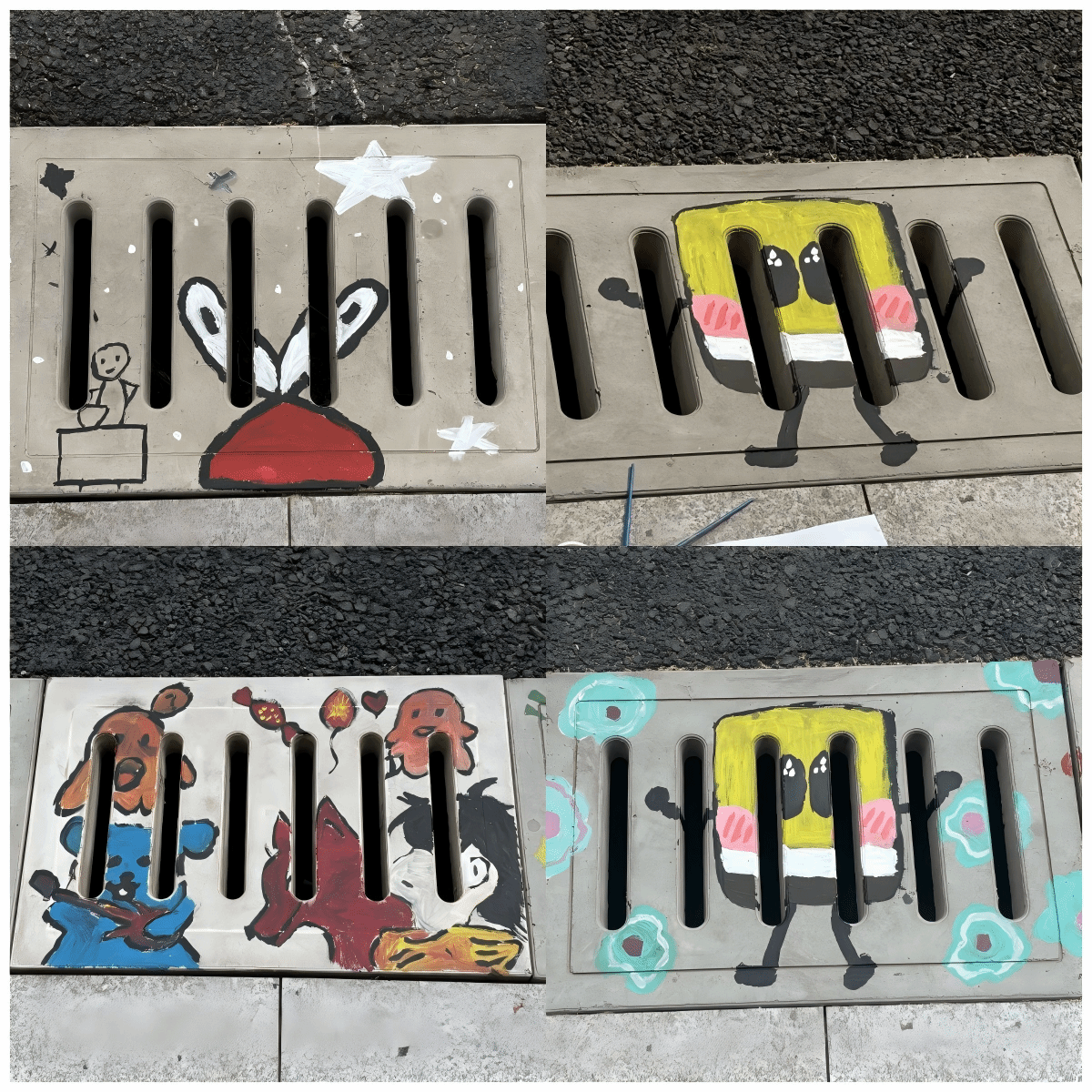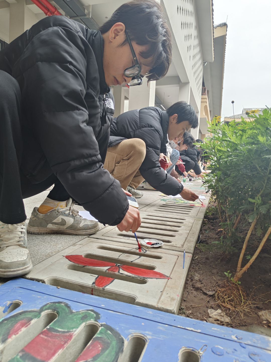 3月21日第一期活动以“卡通动物”主题,同学们化身“空间魔法师”,为中庭排水渠披上新装。垂耳兔的灵动、长颈鹿的优雅、狮子的威严,在同学们的彩笔下跃然渠间。青春的足迹与书院的温暖于排水渠上交织。