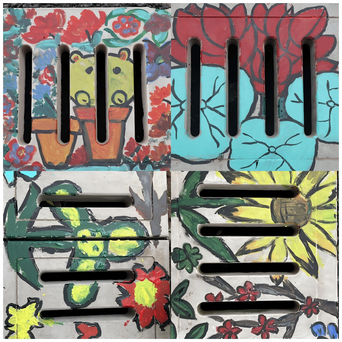 4月2日第三期以“花卉”为主题,同学们用画笔书写自然的诗行,猩红的玫瑰像是能刺破灰暗的午后,野菊的明黄则像散落在草丛里的阳光碎片。排水渠上的色彩是泼向庸常生活的颜料,在这本是暗淡的“一亩三分地”上绽放出了“万紫千红总是春”的意境。