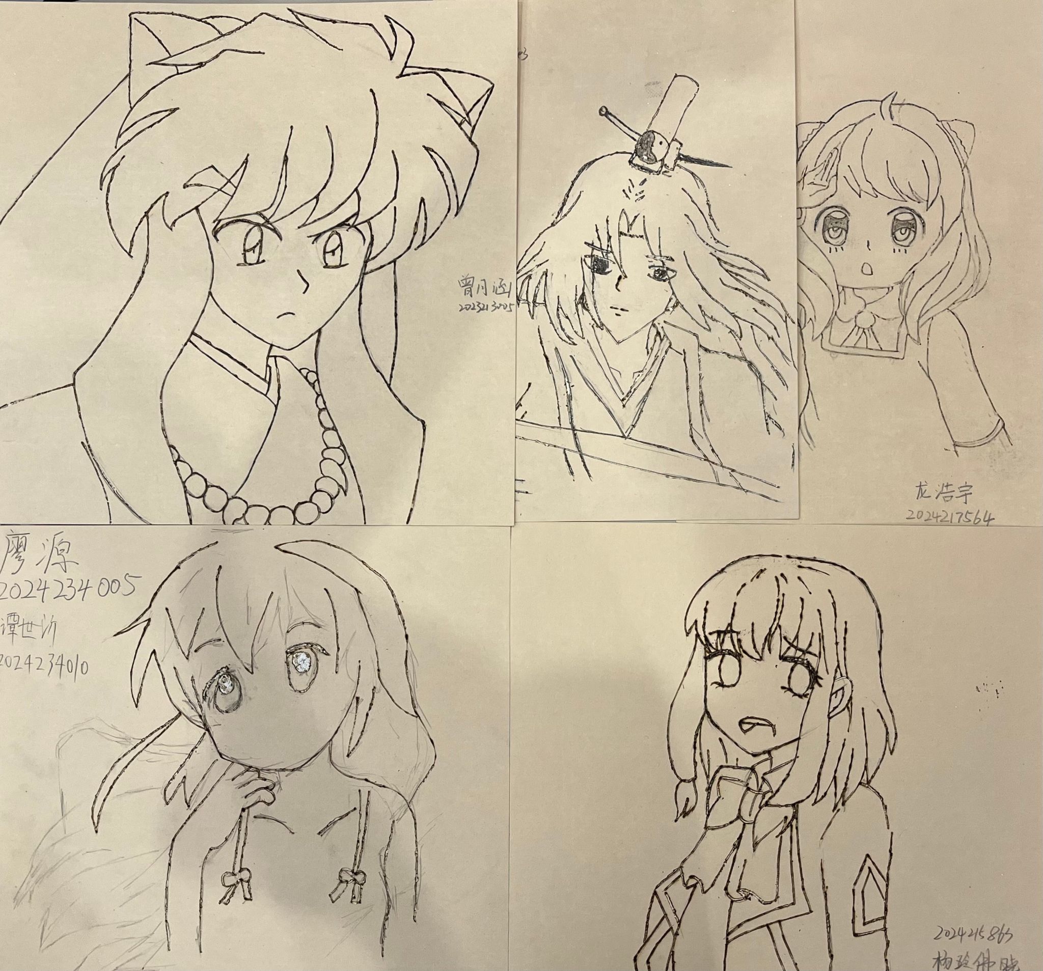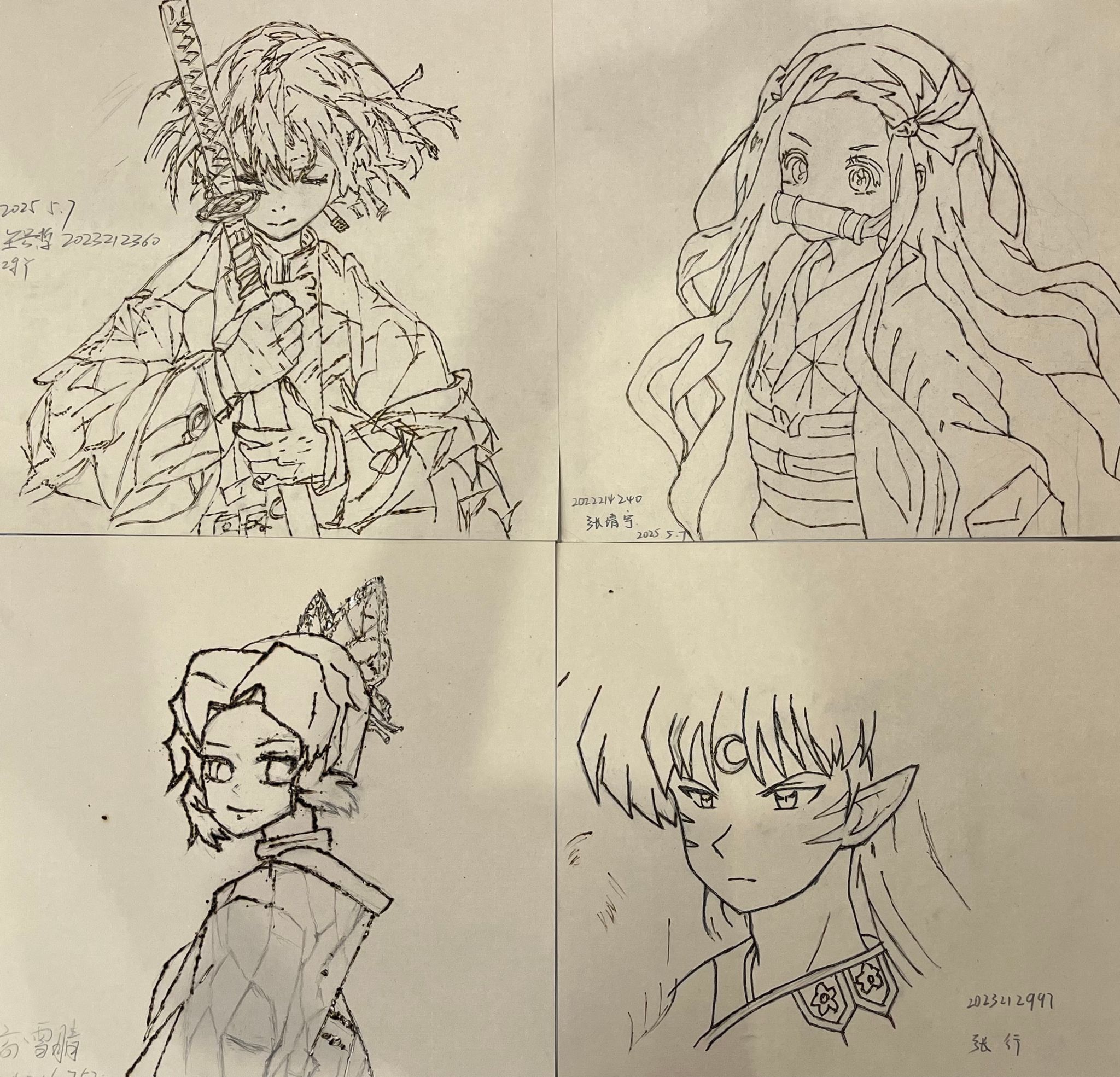 耳闻之不如目见之,目见之不如足践之。在实践环节,同学们根据“次元穿越”主题的线稿,选取了自己喜爱的图案,从经典的动漫角色到现代的潮流元素,每一幅作品都在宣纸上呈现出独特的立体感与生动性。木香与烙铁的温度交织,同学们用细腻的笔触和精准的技法,让平面的线稿在木板和宣纸上“活”了起来。从《鬼灭之刃》中炭治郎的温柔眼神,到《狐妖小红娘》中相思树下的深情对望,同学们用传统技艺诠释现代创意,展现出独特的艺术风格。