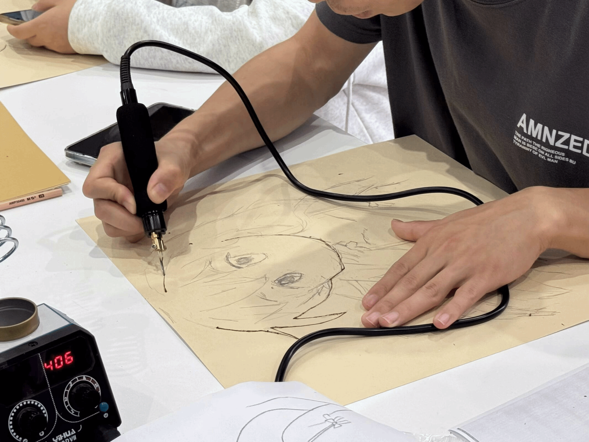 烙画是火与木的交融,是铁笔在高温下对生命的礼赞。千年技艺在现代创意的加持下,跨越次元的边界,焕发出全新的活力。5月7日,丁山书院在DS206巨蟹座·项目共创空间举办“传承千年·烙画守护计划”第3期活动,本期以“烙穿次元壁”为主题,将传统烙画技艺与现代流行文化深度融合,引导学子们在探索与实践中感受非遗文化的魅力,为书院生活增添了一抹独特的文化亮色。