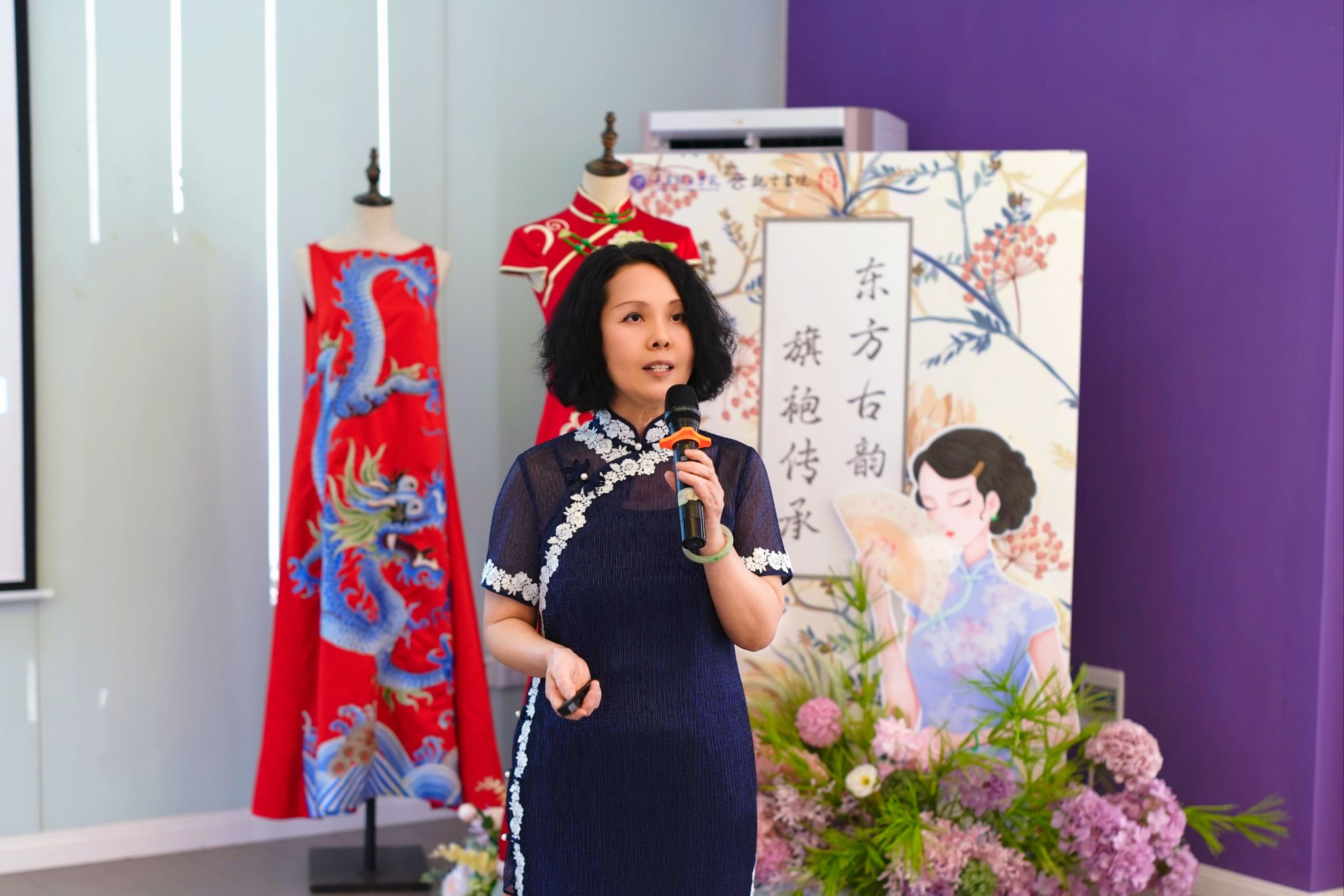 张小君老师从旗袍的历史渊源、工艺特色、文化内涵等方面将中国旗袍文化娓娓道来,并结合自身传承经历,讲述了旗袍制作中的匠心精神。