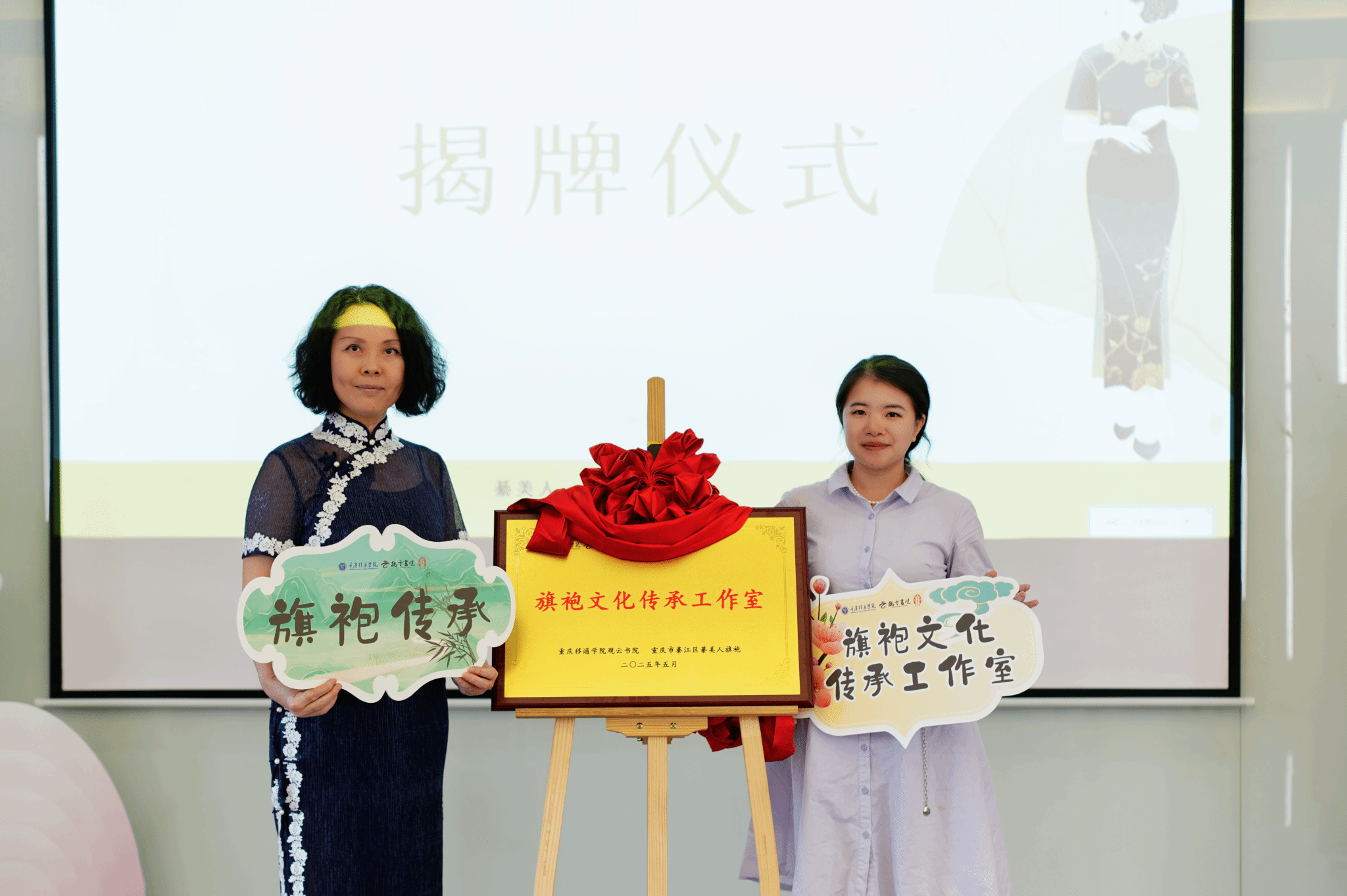 活动现场,由綦美人旗袍张小君老师和观云书院综合办主任杜荧老师共同为旗袍文化传承工作室揭牌。同学们也在此见证了传统文化与书院育人资源的深度融合。未来,观云书院、綦美人旗袍将以旗袍文化传承工作室为依托,以旗袍展、讲座、文创设计比赛等形式持续开展活动,让旗袍文化真正“活”在校园中,走进书院学子的生活里。