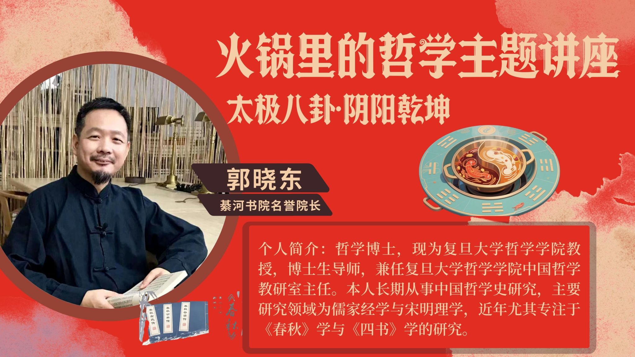 一元两仪,《周易》说万物有象,沸腾的红汤是阴阳交融的太极,毛肚黄喉在坎离间浮沉,麻辣鲜香撞上五行生克,当哲学系的名誉院长遇上千年的火锅文化,一场讲座带你感悟水与火妥协的火锅艺术,在乾坤朗朗的平衡之道中领会天地玄黄的华夏智慧。