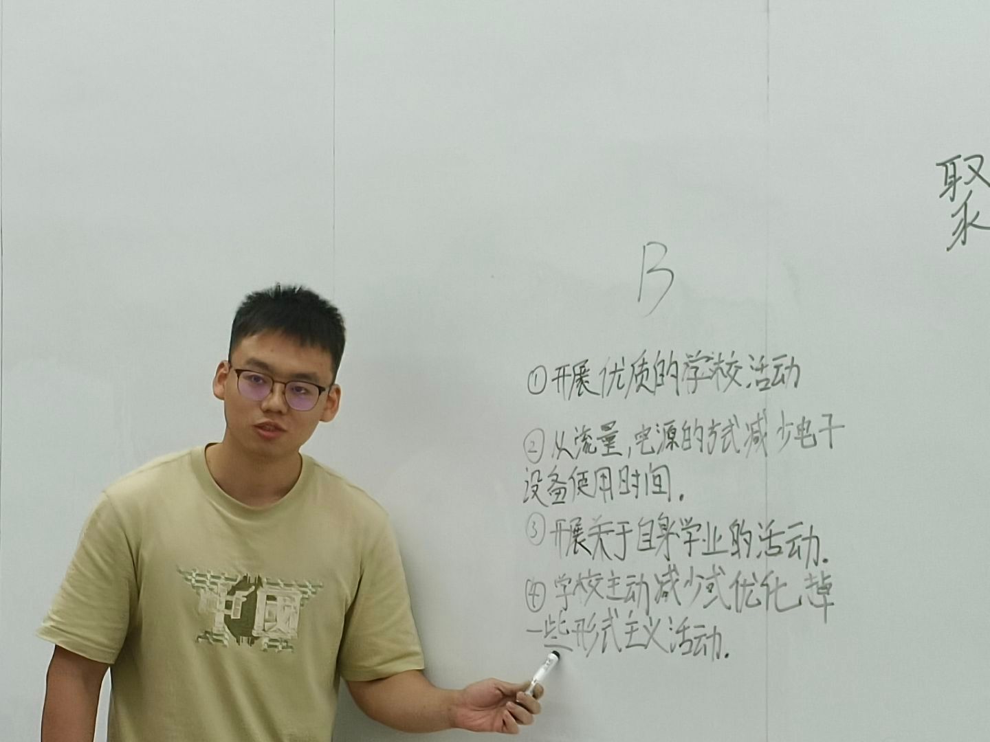 为扭转这一局面,B组同学提出针对性建议。学校可开展“数字排毒”活动周,活动期间学生统一上交手机,全身心投入读书分享会、户外探险、体育竞技等线下活动,重拾与现实世界的亲密连接。此外,他们还呼吁同学们制定专属屏幕使用计划,清晰划定每日电子设备使用时长与用途,以自律之姿严格践行,逐步摆脱屏幕束缚。