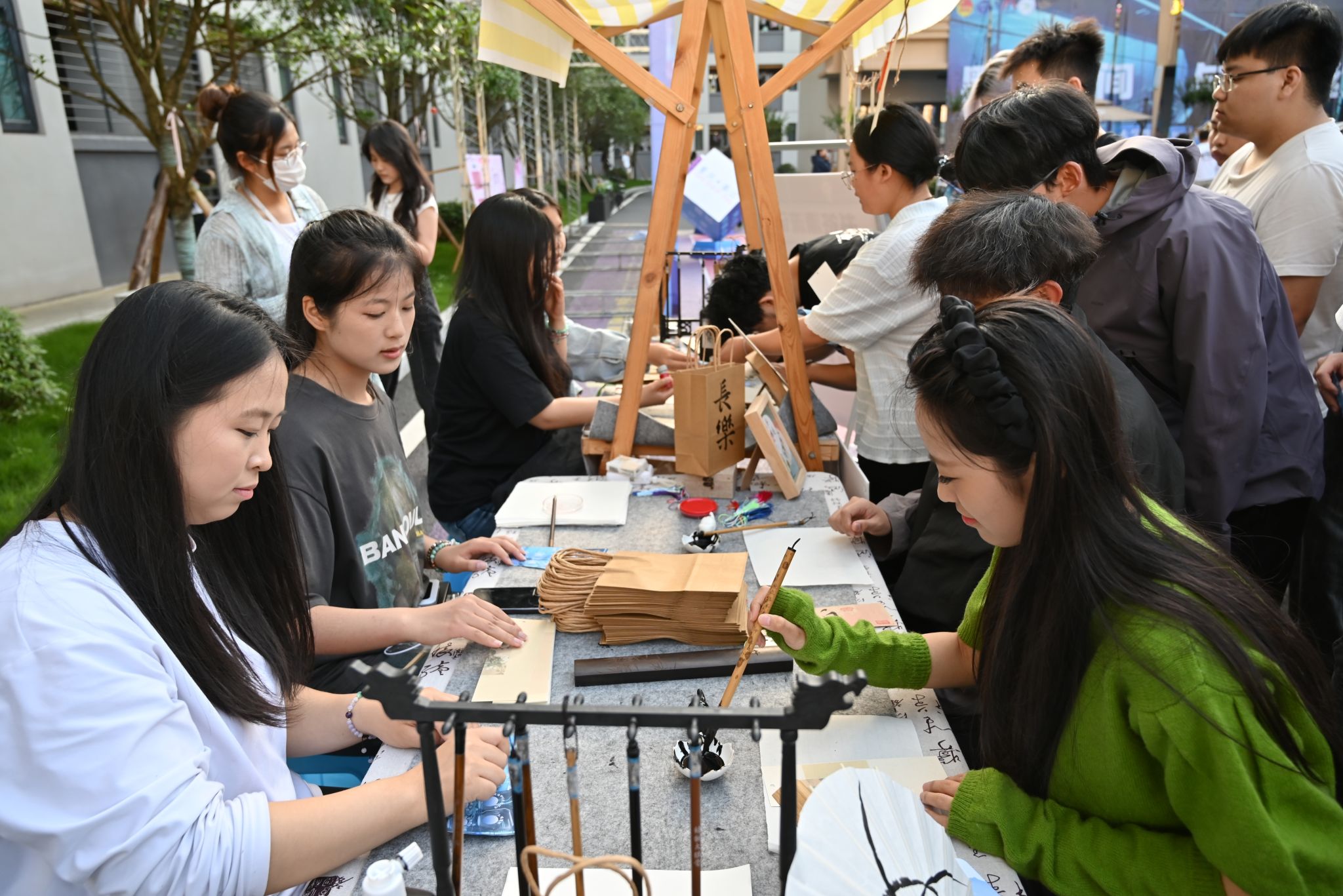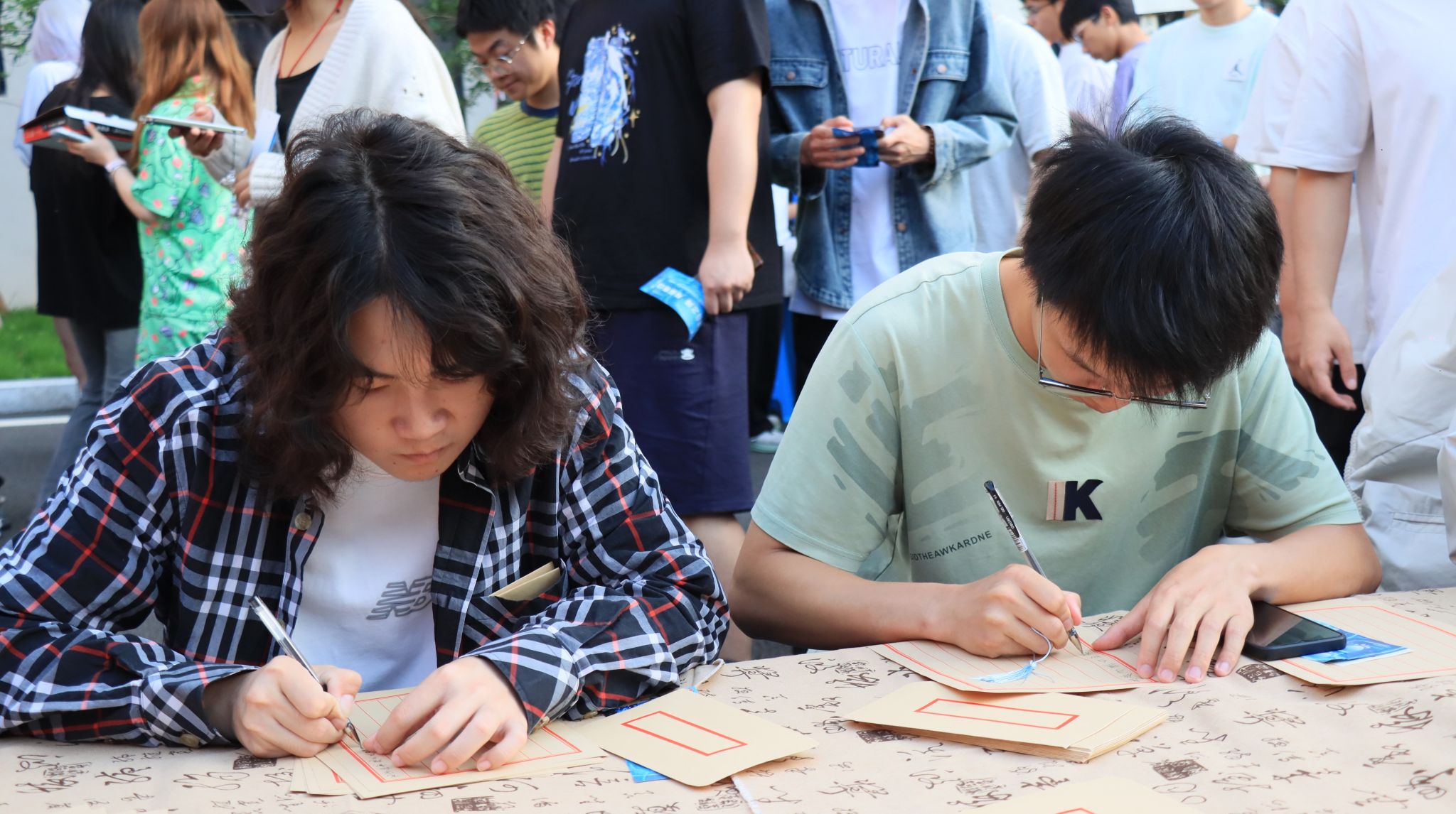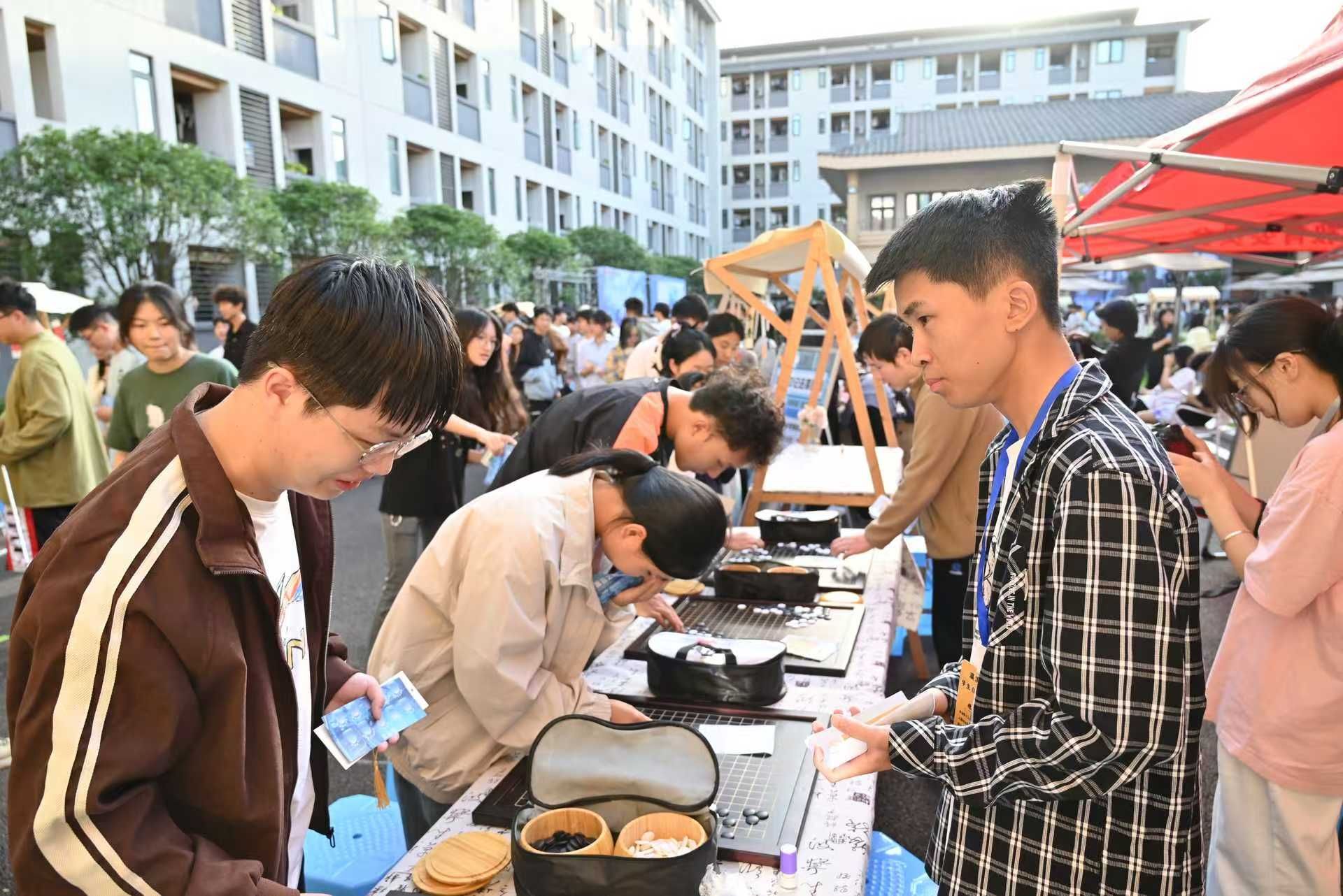 文化创意环节同样亮点纷呈。“书签漂流记”与“画框里的异想工坊”将棋类元素与艺术创作结合,学生在书签上书写座右铭、在画框中绘制棋韵图案,实现传统元素与现代艺术的碰撞;“黑白印记还原棋谱”则通过记忆与复现,强化参与者的空间思维和全局;“与你‘邮’约”活动中,同学们用信件为围棋选手送上祝福的同时,也为2026年的“登瀛杯”表达美好期许。
