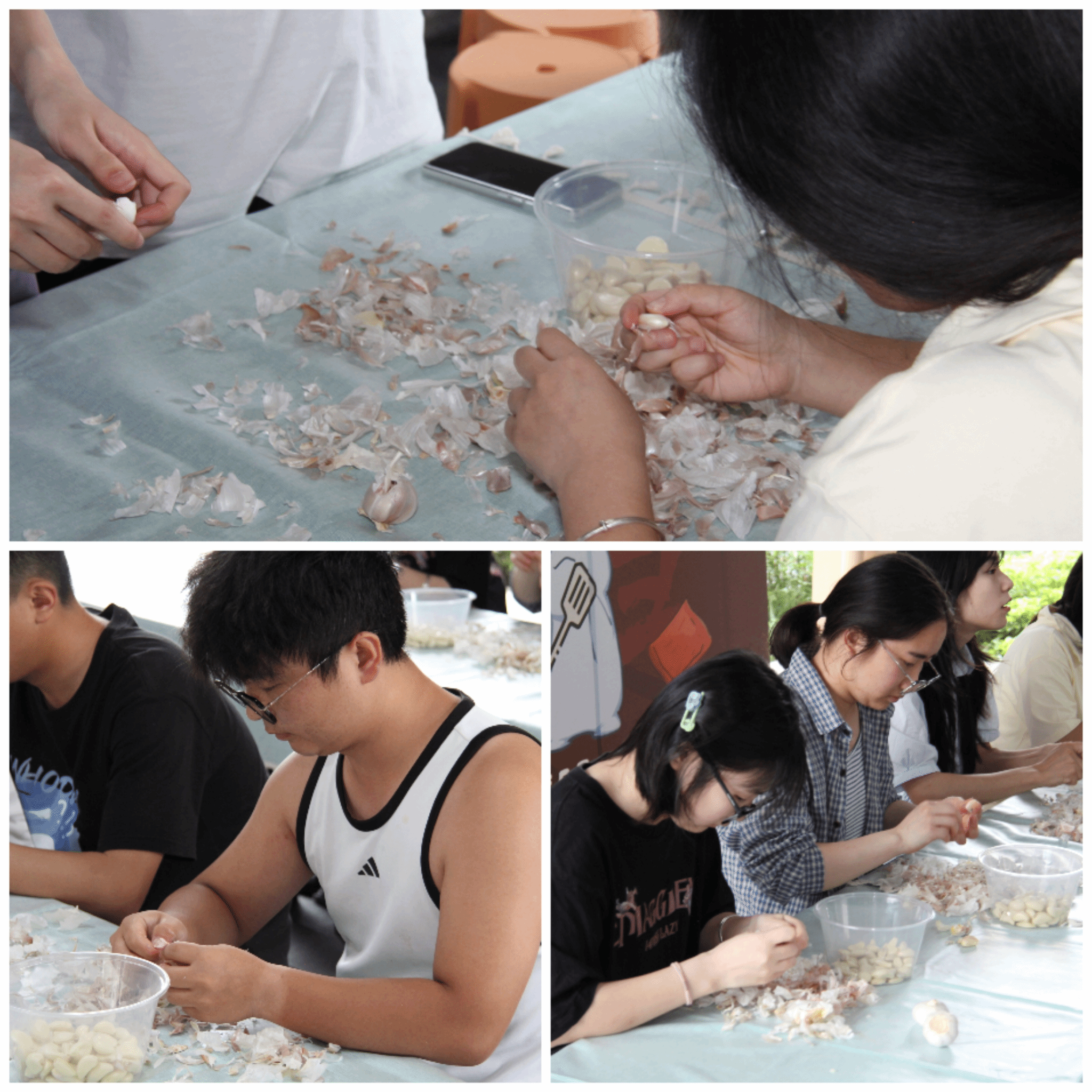 “剥蒜大挑战”拉开活动序幕,这场比拼不仅是十支队伍的实力较量,更是为炒出辛香浓郁、层次丰富的火锅底料寻觅 “灵魂” 食材的趣味征途。各小组短暂商议后迅速进入备战状态,挑战伊始,各组势均力敌,场面难分上下。随着时间推进,战况逐渐明朗,擅长用指甲剥蒜的选手渐占上风,进度落后的成员也毫不气馁,即便目睹多组率先完成,依然全神贯注、有条不紊地处理手中蒜瓣,最终全组成功通关,为后续环节注入满满信心。