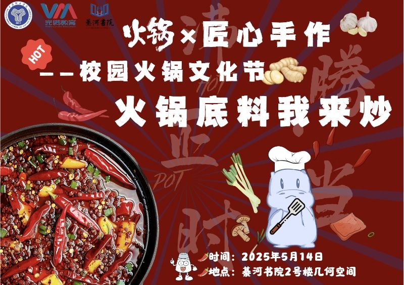 沸腾正当时,巧炒味香驰。一场以师生为主角的“火锅×匠心手作——校园火锅文化节之火锅底料我来炒”活动,于5月14日下午在綦河书院几何空间热力启幕。师生热情奔赴、踊跃参与其中,为校园生活晕染出浓浓烟火气,更添蓬勃青春活力。